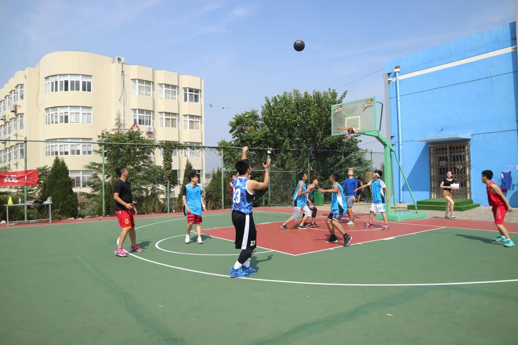 比赛之前,球员们都积极练习,兴致高昂。在裁判员宣誓之后,比赛正式开始。先看男篮,随着一声哨响,篮球抛向空中,一位球员率先出击抢到了球,以迅雷不及掩耳之势先进一球,另一队也不甘示弱,彼此配合投进一球。之后在第一节和第二节中,凭着彼此默契的合作将比分逐渐拉大,在第二节结束时,联队二暂时领先。随后联队一奋起直追,渐渐将比分追平。第四节开始后,比赛进入到白热化阶段。联队一稳扎稳打,凭借一颗三分球又将比分拉开,最终赢得了本次比赛。反观女篮赛场,联队一与联队二也是拼尽全力,比赛的热情一点也不输男篮赛场。比赛愈演愈烈,胶着紧张。王策策和徐雅婷分别获得男女最佳球员的称号,在后来的三分球大赛和技巧大赛中,球员们各显神通,矫健灵活,向这世界展示着他们昂扬向上的蓬勃朝气,王鸣宇和黄智斌分别获得了三分冠军和技巧冠军。