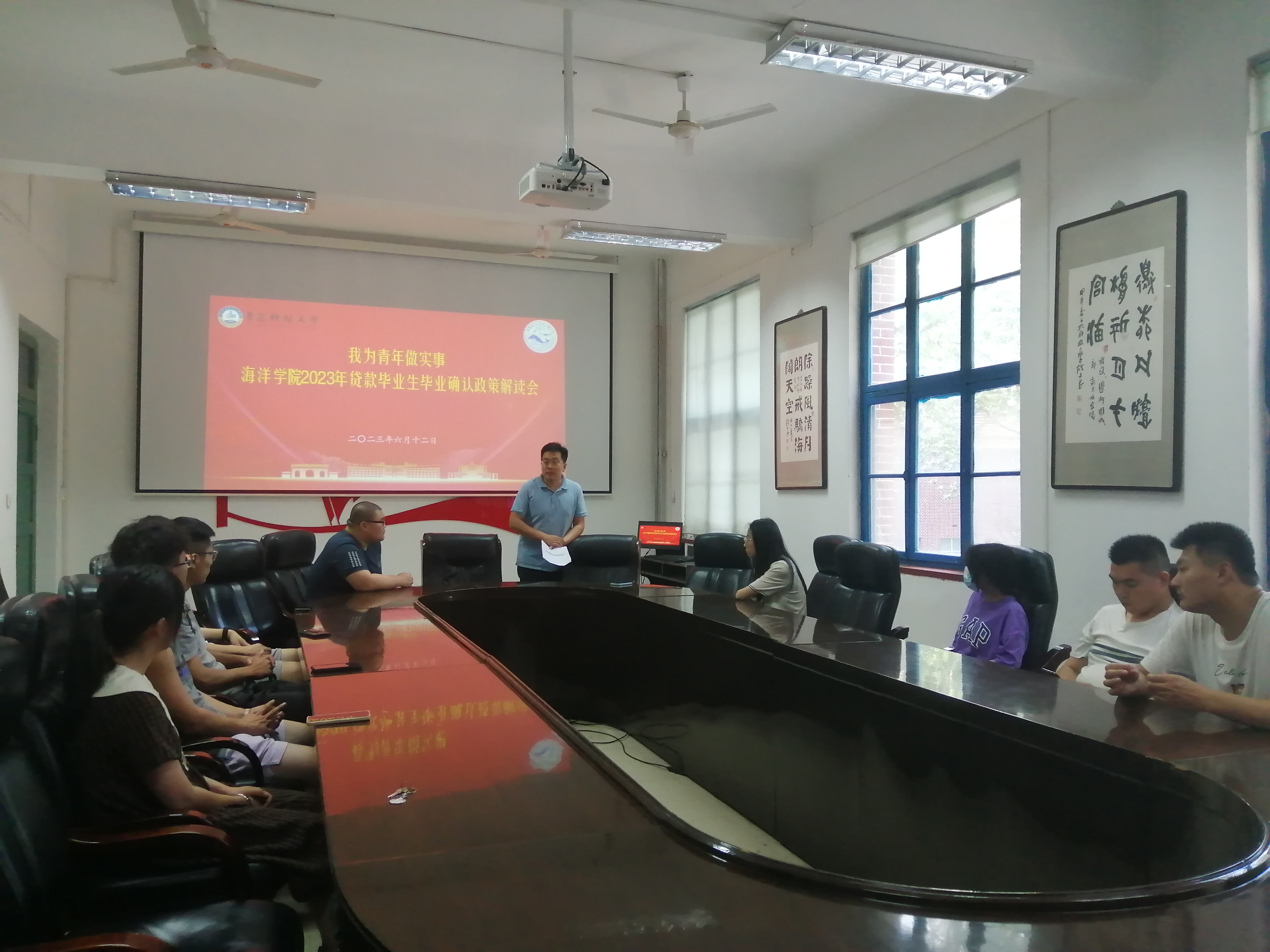 为推进我为青年做实事走深走实,落实落细2023届贷款毕业生的毕业确认工作,确保相关资助政策对2023届贷款毕业生的全方位覆盖,6月12日下午,海洋公司团委组织召开2023届贷款毕业生确认工作政策解读会。海洋公司团委书记李浩参加会议,2023届贷款毕业生参加解读会。