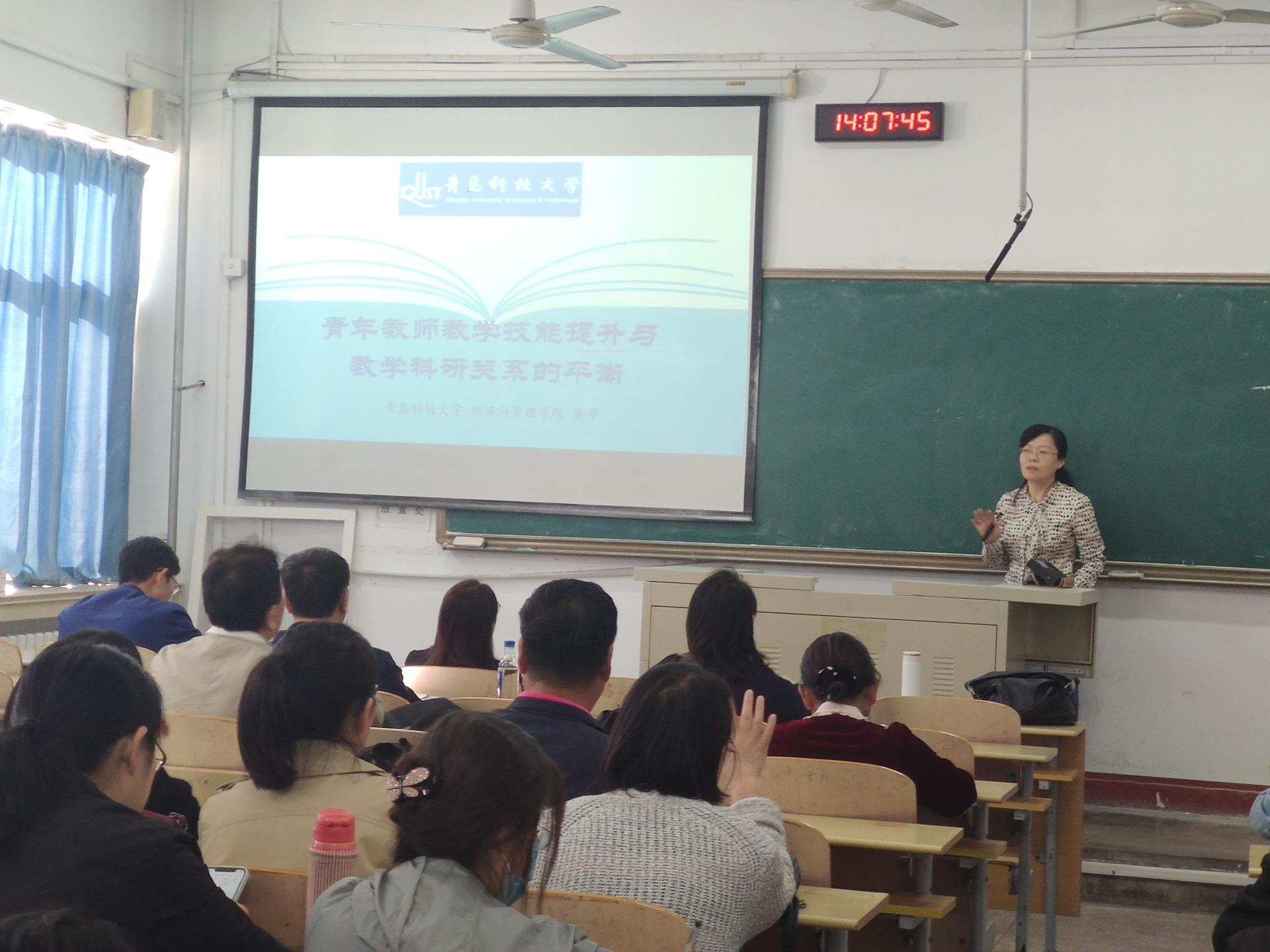 会议上,李经理首先对董华教授在教学和科研上取得的成果进行了介绍。随后,董华教授从青年教师站好讲台的重要性、青年教师教学技能提升的困难和路径、青年教师怎样平衡教学与科研的关系、一流课程和教学项目申报四个角度作了专题报告。董教授指出,教师作为影响和成就他人的职业,坚持“课大如天,员工第一”;教学技能提升坚持“学习-反思-突破”;教学与科研坚持“不抛弃、不放弃、善平衡”;并结合自身申报教学项目经历深入浅出的讲解了一流课程申报的方法技巧。最后,李经理在做总结时表示,董华教授为在座老师奉献了一场有高度、有力度、有深度的专题报告,董华教授的精彩分享让老师们充分意识到教师职业责任感和使命感。各位老师也会正视目前的现状,为老师们下一步教学与科研双向平衡指明了道路。