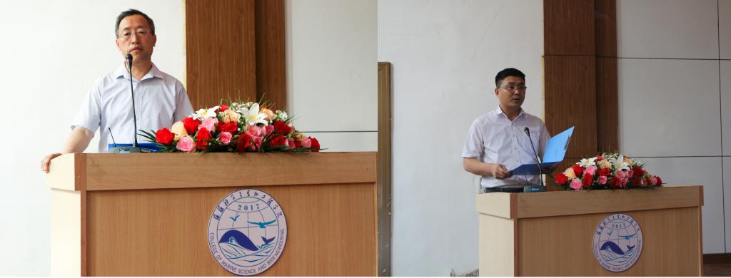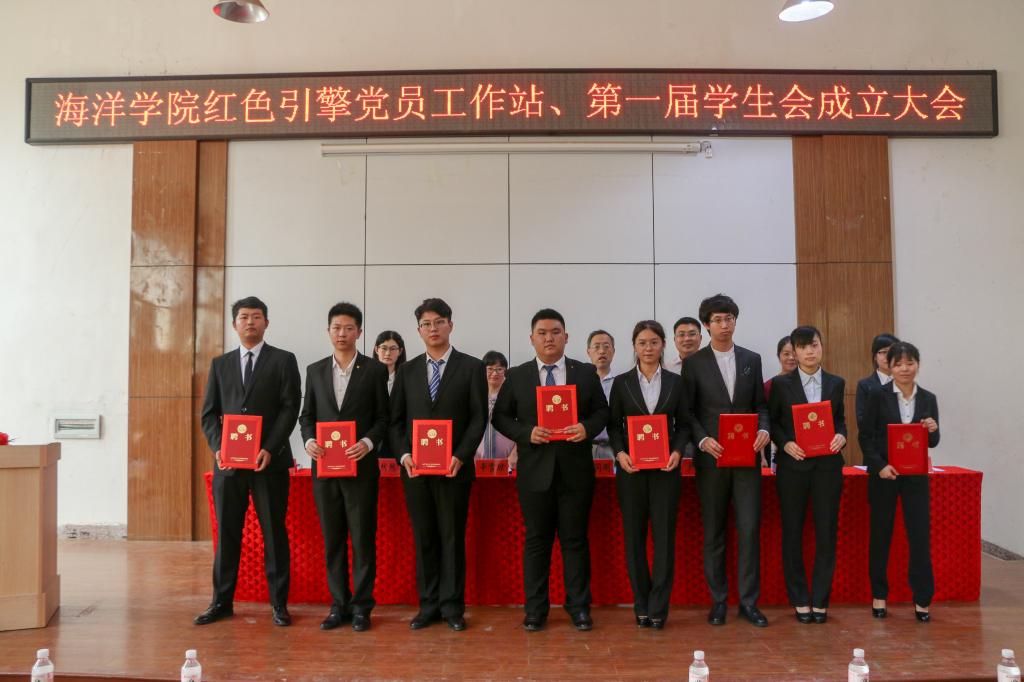 会议上,卢中彬老师宣读了《海洋公司党字【2017】7号关于成立“红色引擎”党员工作站的决定》,校员工会主席王然然宣读了关于成立海洋公司第一届员工会的批复,王祥梅老师宣布第一届员工会成员名单,兄弟院系员工会主席代表先后致贺词,党站站长付文静与第一届员工会主席王珞分别作了就职演讲,台上领导和嘉宾为党站委员和员工会骨干颁发聘书。