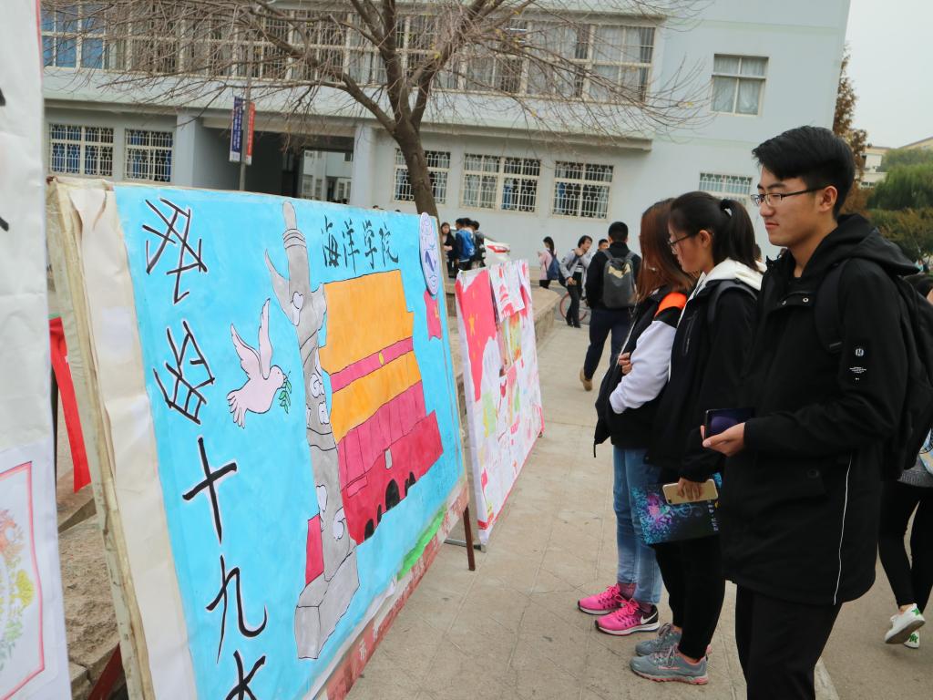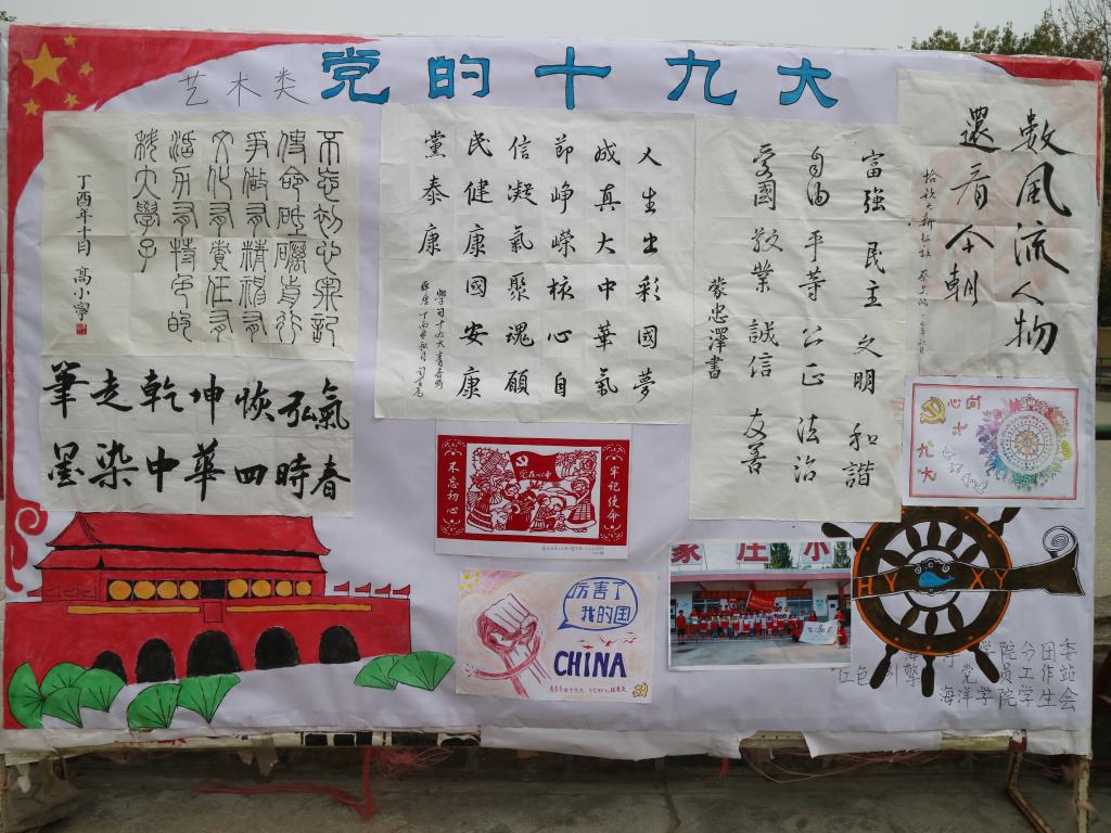 海洋公司党员工作站结合工作实际,将十九大报告全文形成精炼的学习资料,组织全院员工进行学习。员工党员充分发挥带头作用,带领全院员工将自己的所学所感以丰富多样的形式展示出来,参与度高达90%。学习成果展示活动共收到作品271件,其中写作类作品195篇,原创诗歌19篇,板报类作品36幅,书法10幅,绘画11幅。作品形式丰富多彩,内容思想真实深刻,一幅“数风流人物,还看今朝”的书法作品苍劲有力,展示了海洋学子蓬勃向上,激流勇进的时代精神;一幅“不忘初心、牢记使命”的剪纸艺术栩栩如生,凝结了员工党员不负重托,一往无前的坚定信念;一首“你好,新时代”的原创诗歌气势恢宏,表达了新时代青年心系祖国,心有大我的家国情怀;“山海情”支教服务团队的摄影作品,新颖独到,展现了志愿者们无私奉献,勇于担当的服务精神;“心向十九大”、“共筑中国梦”等手绘板报线条柔和、色彩饱满,抒发了莘莘学子对祖国的大好河山、大美风景的无限热爱。经评委组评选,共选出李慧敏、陈怡乐、闫煦等同学的五十余幅优秀作品进行展出。展出伊始,同学们纷纷在展板前驻足、观看、热议,学习气氛浓厚,大家用实际行动响应党的号召,积极学习并践行十九大精神。
