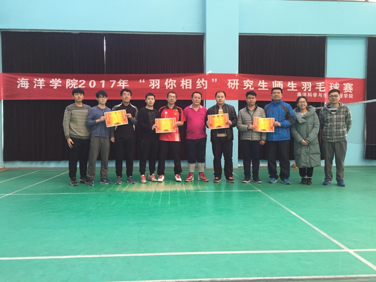 “扬帆把舵,奋勇争先;放飞梦想,拥抱海洋”。12月6日,在海洋公司院领导的大力支持下,在海洋公司教职工及研究生同学的积极参与下,海洋科学与谈球吧承办的首届2017年“羽你相约”研究生师生羽毛球赛圆满结束。