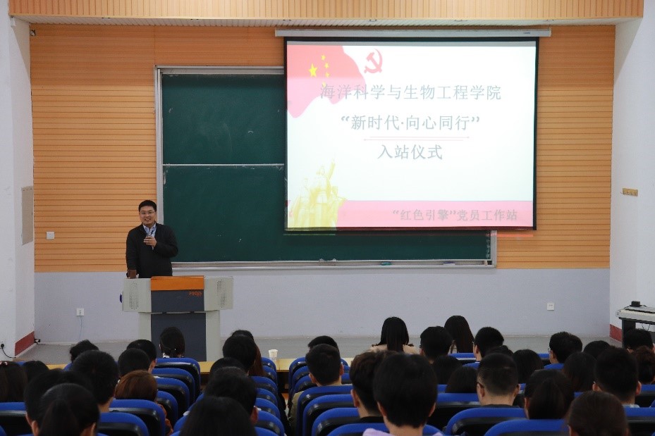为提高员工党员,干部的整体素质,树立模范带头作用,调动全院员工党员和入党积极分子积极性,为新时代助力,4月17日下午,海洋公司“红色引擎”党员工作站“新时代•向心同行”入站仪式在二教101隆重举行,海洋公司党总支副书记兼副经理卢中彬、兼职辅导员王静、“红色引擎”党站全体党员、入党积极分子及员工代表参加了此次入站仪式。