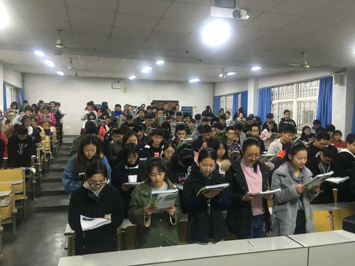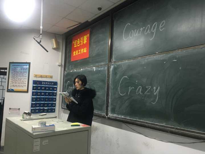 自此,海洋公司“红色引擎”党员工作站举办“享一个月晨读”活动,从11月起,组织全体新生在第一教学楼103室定期开展“3C(Courage·Confidence·Crazy)晨读团”活动,党站站长刘金岭邀请曾荣获国家级老员工英语竞赛C类特等奖、四级高达630分的孙成雯同学&VOC电台播音员马家璇同学,在场帮助大一新生完成从高中到大学独立自主学习的转变,进一步规范英文吐字、发音等问题。党站特此创建了一个早读QQ群(615404174),每天发送英文的每日一句和英音、美音的诵读,同学们深受感染,自发将自己诵读的句子在群里分享。