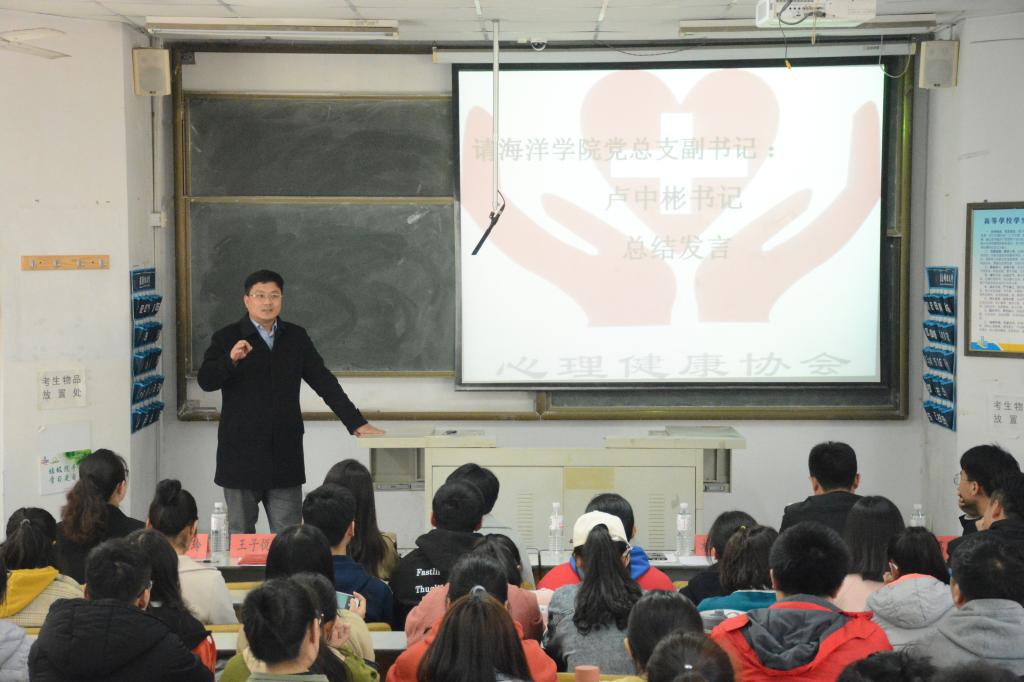 3月19日下午13:30,海洋公司“心海”心理健康协会成立大会在一教501室举行。海洋公司党总支副书记卢中彬、分团委书记辛雪琼、校心协代表、各年级辅导员及海洋公司全体心理委员和心音使者出席了本次大会。
