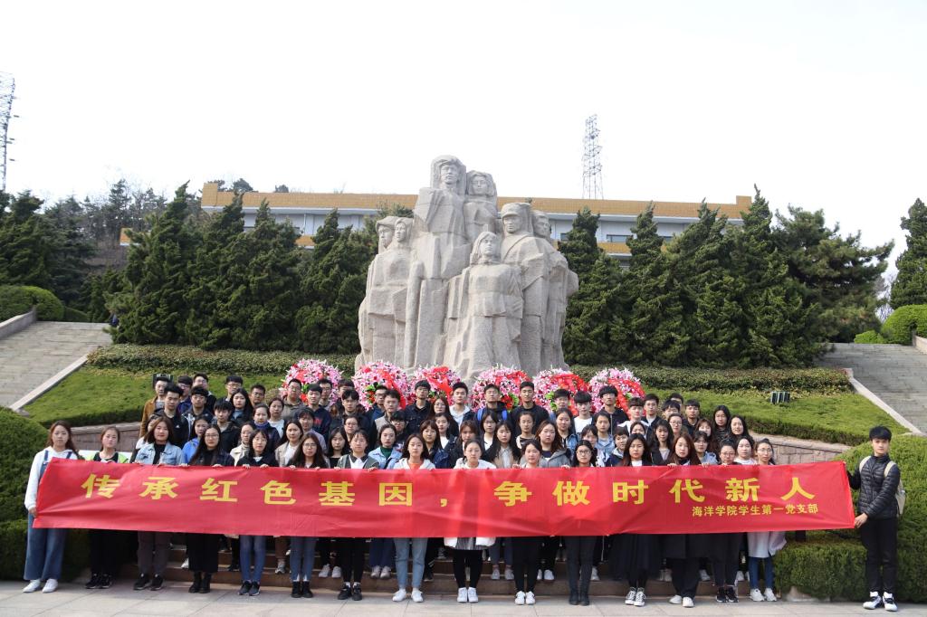 在青岛市革命烈士纪念馆,海洋公司全体师生党员缅怀英雄,追思先烈。在“山河魂”烈士群雕前,伴随着《国际歌》,举行了庄严肃穆的悼念仪式,向革命烈士们敬献花篮,致以崇高的敬意。海洋公司师生党员在军魂馆、抗战馆、革命烈士纪念馆,认识了在抗洪、地震、烈火中英勇牺牲的烈士,了解到青岛人民在抗日战争、解放战争时期不畏强敌,奋起抗战,保家卫国的事迹。