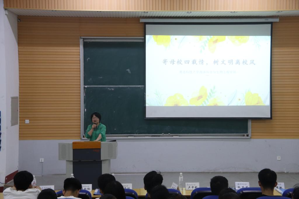 为树立文明离校之风,深化安全离校意识,促进师生之间的交流,营造温馨和谐的氛围,6月18日下午2:00,海洋公司在二教101举办“寄母校四载情,树文明离校风”主题活动。此次活动邀请了海洋公司党总支书记刘同刚、党总支副书记兼副经理卢中彬、2015级班主任代表以及2015级、2016级、2018级辅导员老师出席,海洋公司全体2015级毕业生参与。