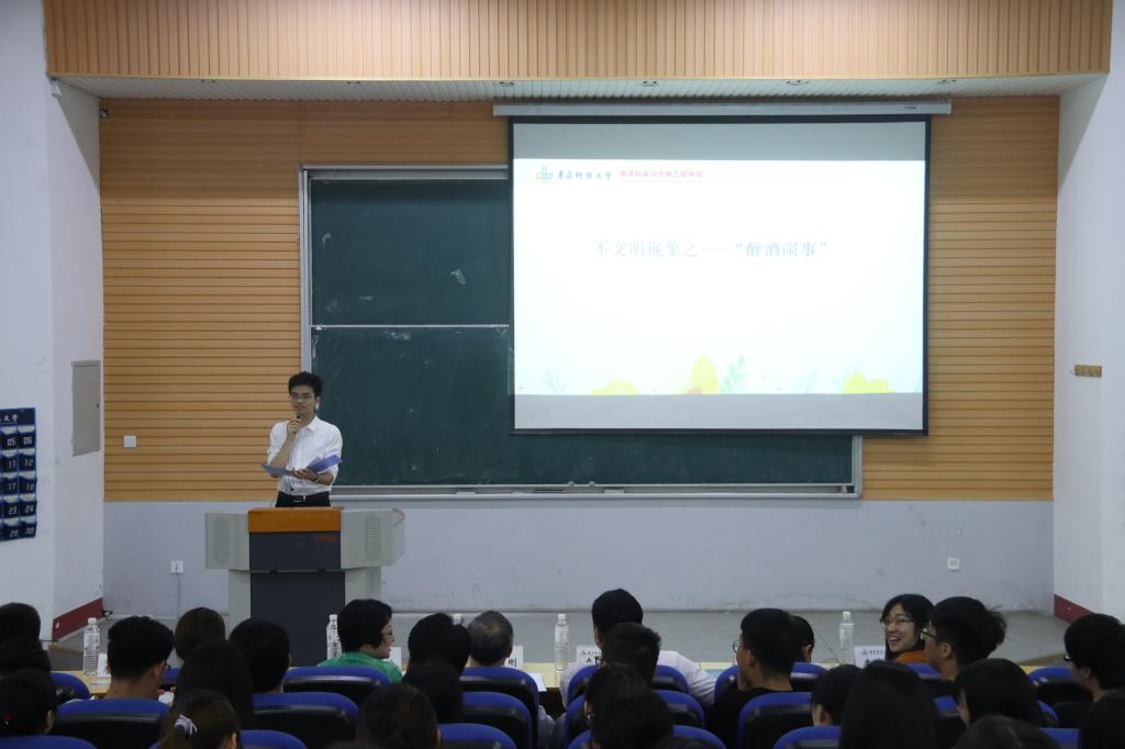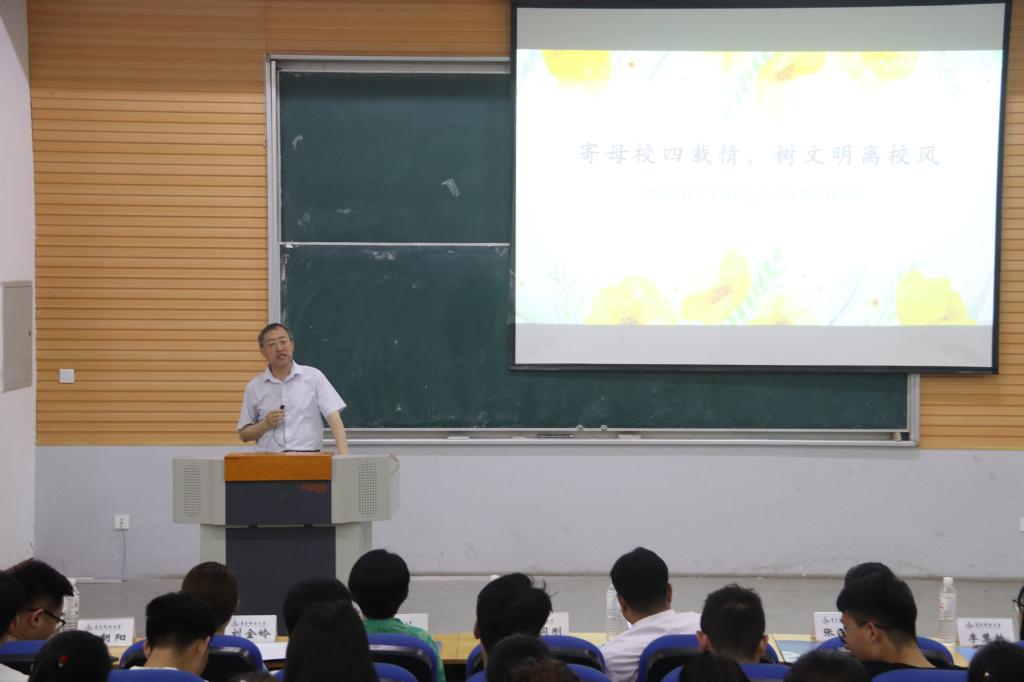 表演后,党员侯磊磊向大家讲述了“以诚立人,依信行事”以及“文明毕业,安全伴行”的重要性,跟大家分享了近几年发生的恶性事件,希望大家共同做到文明离校。