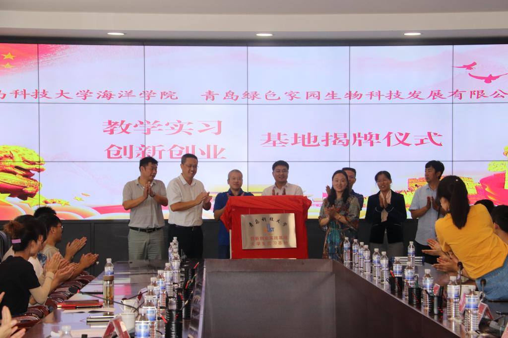 2019年9月18日上午9:30,谈球吧网页版登录入口海洋科学与谈球吧和青岛绿色家园生物科技发展有限公司在西海岸新区大村镇举行实习就业基地签约暨揭牌仪式。大村镇镇长赵伟国、青岛绿色家园生物科技发展有限公司总裁宋江富、海洋公司副经理李昉、党总支副书记兼副经理卢中彬等参加了本次仪式。