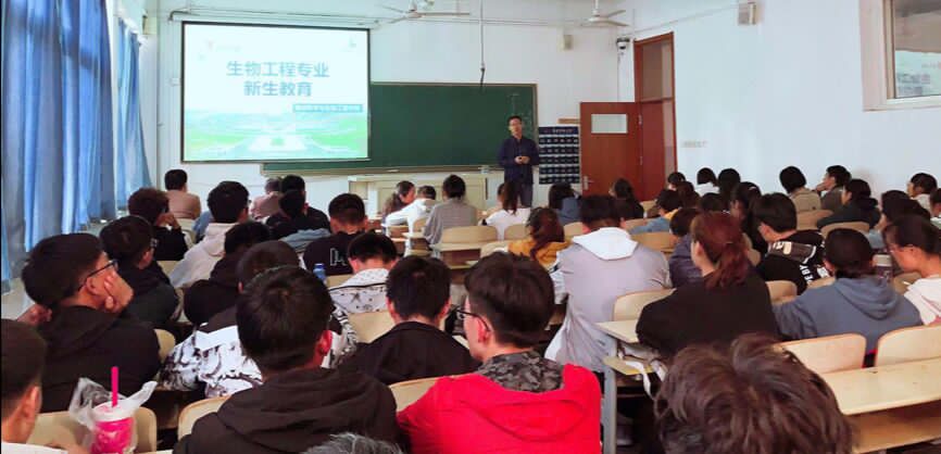 在活动上,受邀教授老师分别为2019届同学们详细讲解了生物工程专业的发展历程、团队队伍、科研业绩、就业方向等,并鼓励同学努力学好专业基本知识和基本技能,制定合适的学习计划,一步步的去实现计划,为以后打下坚实基础。范经理尤其强调:“幸福是奋斗出来的”,要求同学们“不忘初心、牢记使命”,为公司的建设奉献出一份自己的力量。同时,公司生物专业已经毕业的师兄师姐们赠送2019届新同学寄语:展宏图九州英才,创伟业四海豪杰。