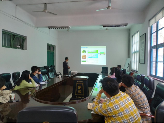 学术交流会上,肖老师围绕农林生物质全组分利用过程中,木质素的转化利用方式及存在的科学问题进行了背景介绍,提出木质素催化降解为酚类化合物是其高值化利用的重要途径之一。就廉价金属Mo催化降解酶解-温和酸解木质素(EMAL)、工业木质素、生物质天然木质素的反应体系与机理进行了详细讲解。在交流过程中,肖老师结合自身科研经验,就研究生如何开展科研工作,如何科研创新给出了很多建议,现场形成了浓厚的学术氛围。最后,在报告最后的自由提问环节中,研究生积极提问,肖老师与海院师生进行了木质素催化降解等相关问题的讨论交流,让公司老师及同学们在知识、精神领域都受益匪浅。