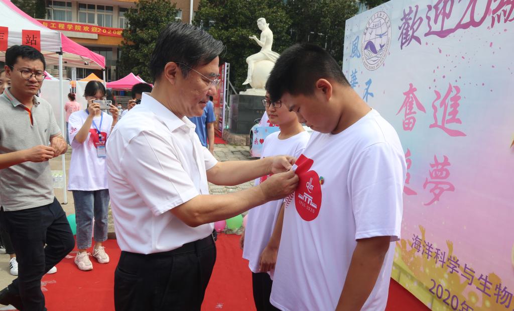 在迎新现场,公司党委书记马连湘为两位名字中含有“海洋”的2020级新生代表肖海洋和陈海洋亲自佩戴校牌、海洋公司院徽,并深情寄语全体海洋学子要牢记科大人使命,传承科大家风,在科大七十年校庆这一新起点,在海洋公司学有所成,为科大、为青岛做出更大的贡献。