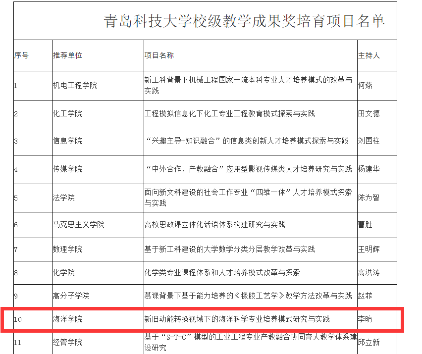 【海洋荣誉】公司获批2020年度校级教学成果奖培育项目立项