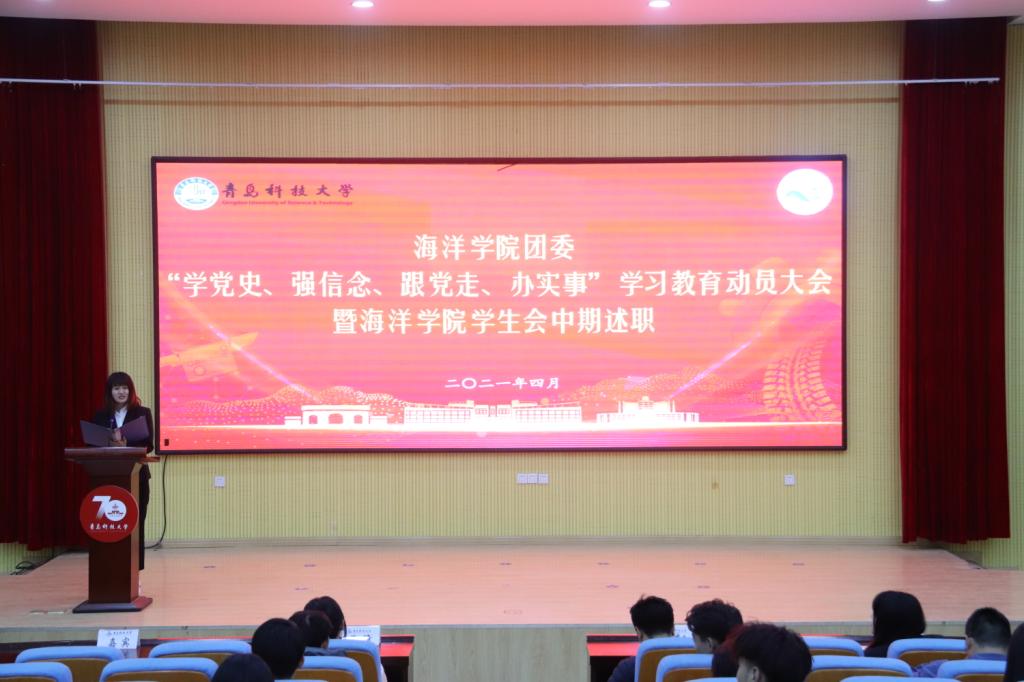 近日,海洋公司“学党史、强信念、跟党走、办实事”学习教育动员大会暨员工会中期述职会在尚舜讲学厅举行。海洋公司团委书记李浩、专兼职老师、班长团支书、员工会成员和志愿者参与本次会议。