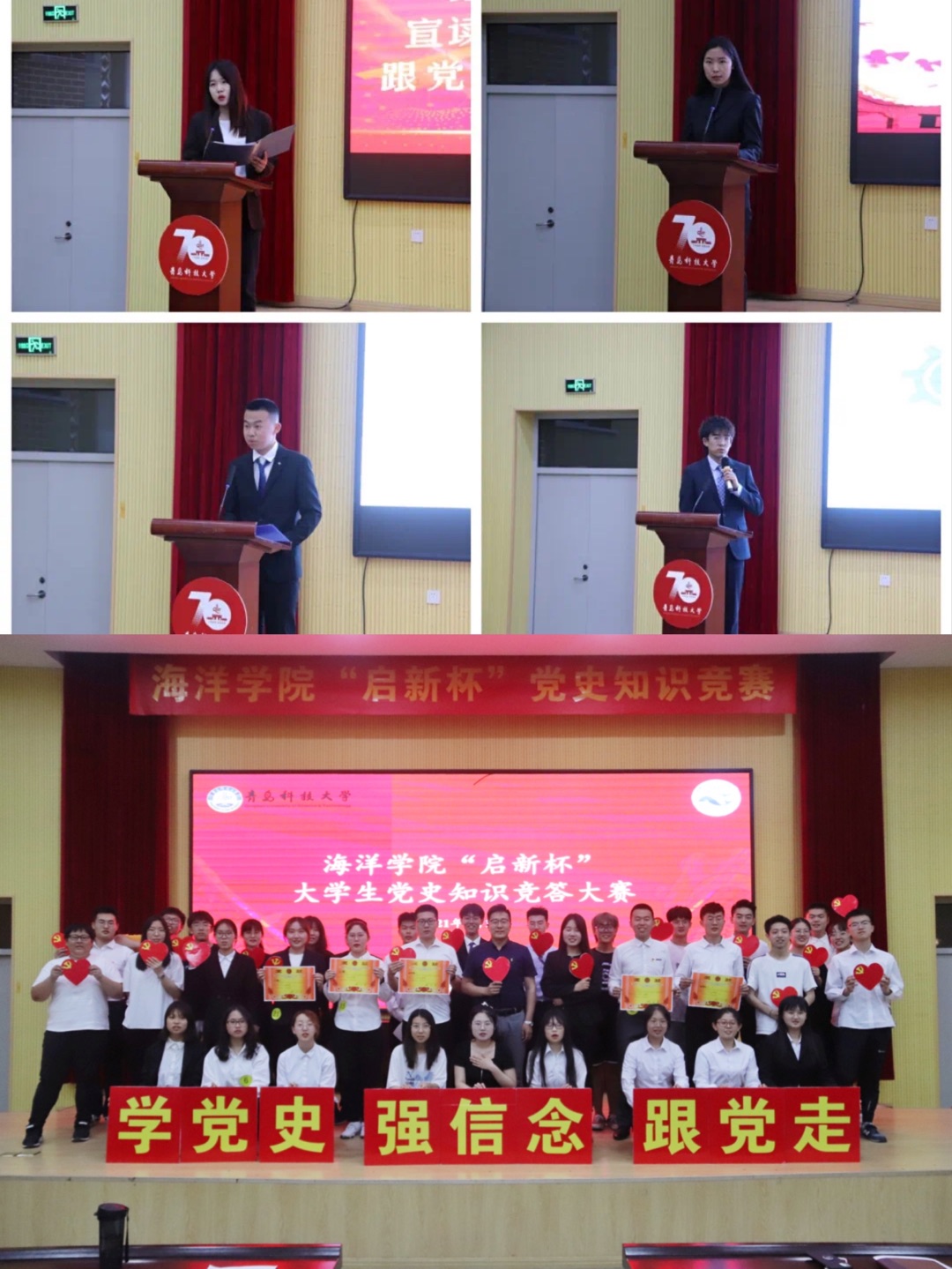 学践结合,促进高质高效学。海洋公司组建“永远跟党走”党史学习教育班,研读《中国共产党简史》等著作,对广大师生党员思想“再充电”、精神“再补钙”。开展“启新杯”老员工党史知识竞赛,以学促思、以学促行,加大党史学习教育的力度、深度和广度,不断增强“四个意识”、坚定“四个自信”、做到“两个维护”,切实提高开展党史学习教育的思想自觉、政治自觉和行动自觉。