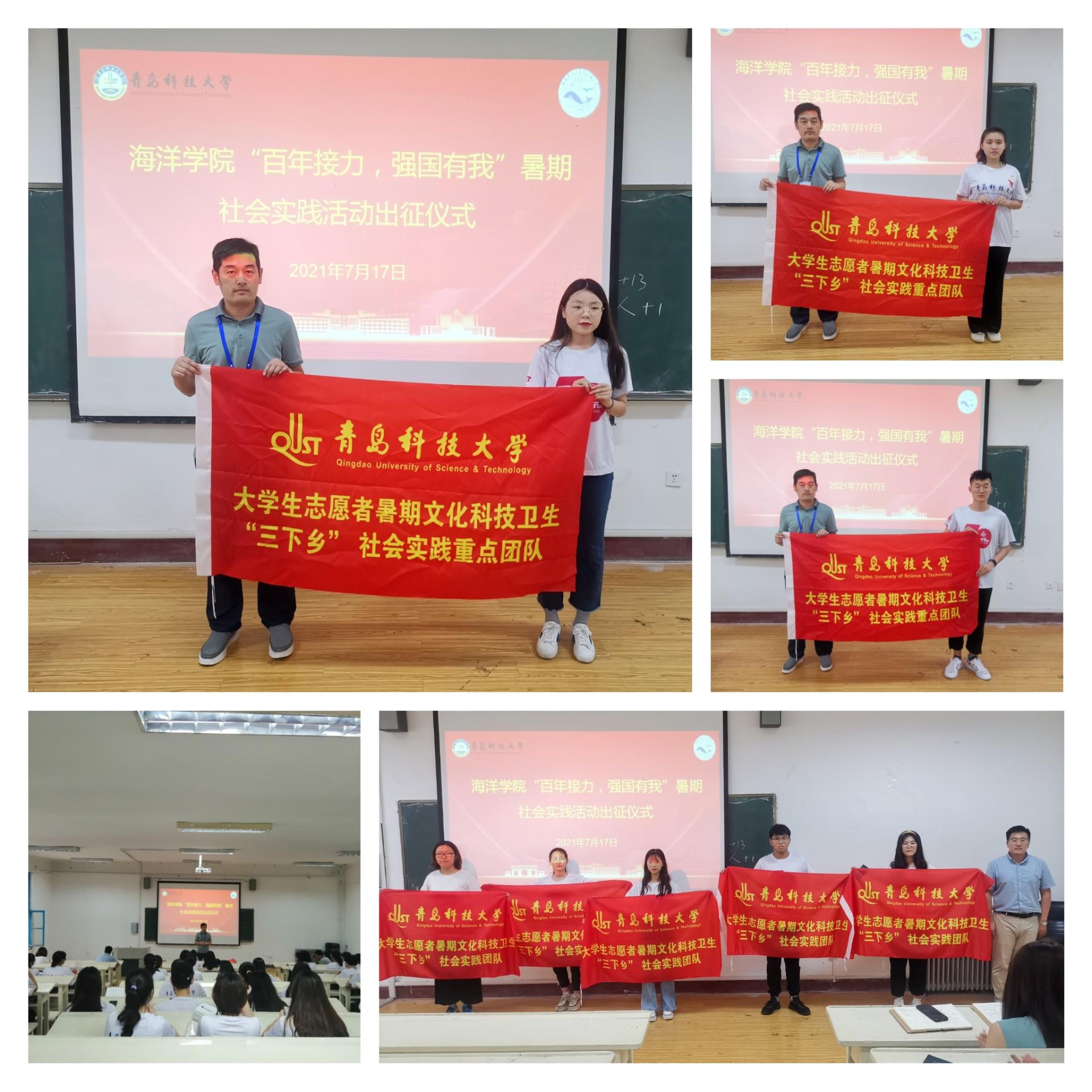 7月17日下午,海洋公司“百年接力、强国有我”暑期社会实践出征仪式在一政243举行,公司党总支副书记兼副经理臧传永、团委书记李浩、副书记杜宗杰、2020级辅导员刘金岭及员工代表出席仪式,公司领导班子与成员亲切合影,仪式由2018级兼职辅导员王倩主持。
