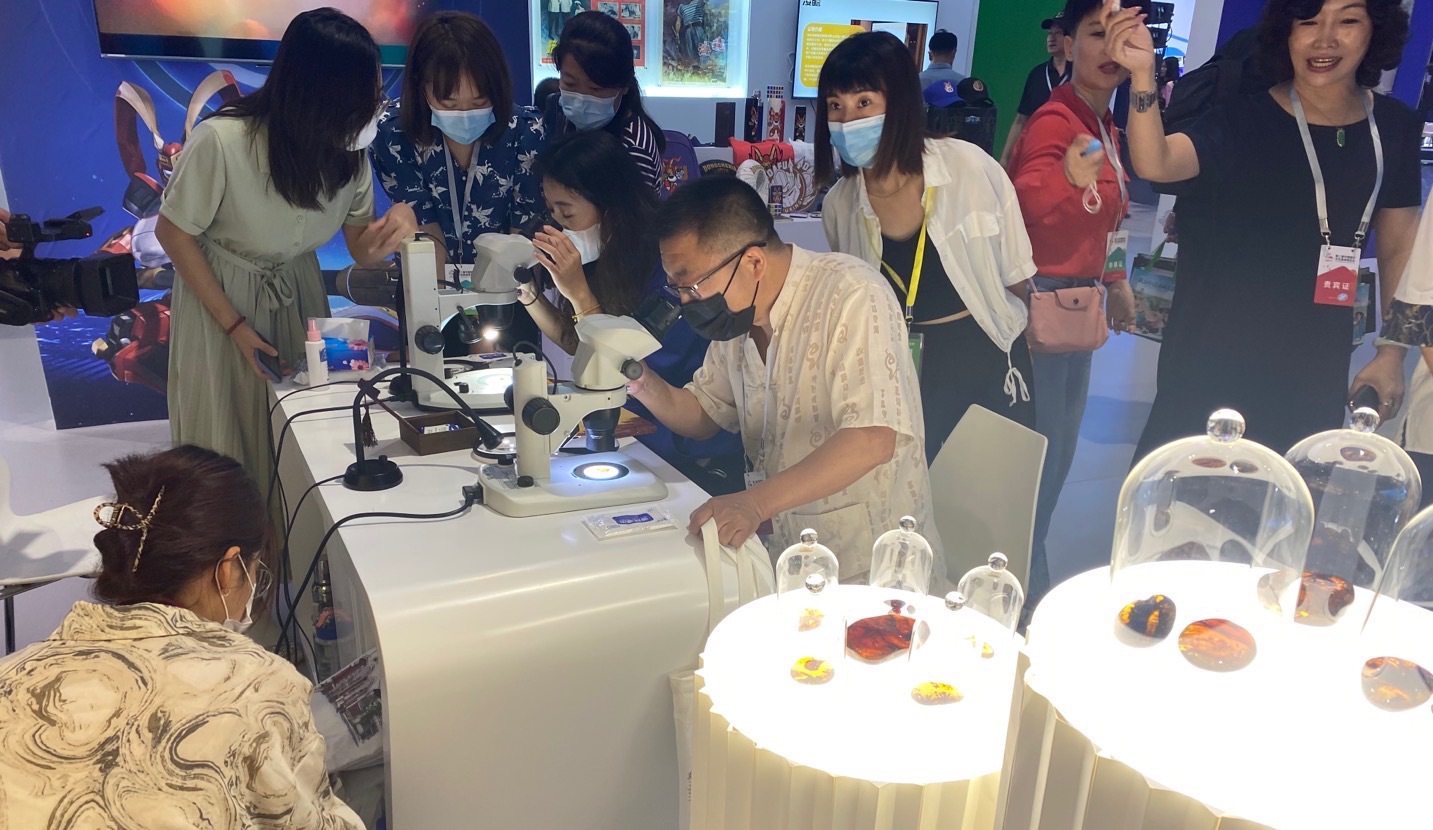 由王硕教授带领的进化生物学团队是一支致力于以琥珀化石及其数字化为主题的科学研究+科普教育的科研团队,在此次文博会上,进化生物学团队从科学研究的角度入手,结合线上数字化大数据与线下博物馆两种形式,展示了当代自然科学的研究方法、对科研成果转化方向的思考与探索,以独特方式献礼建党百年。