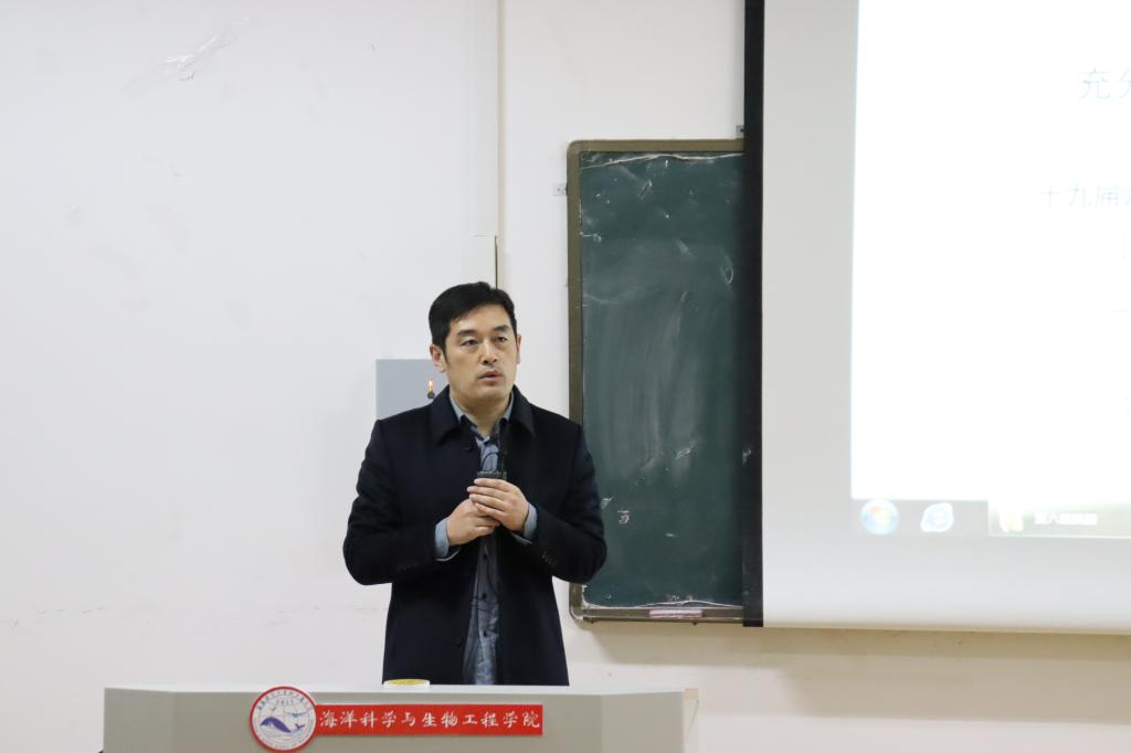 11月16日下午,海洋公司在一政243室举行2021-2022学年“青马工程”培训班。海洋公司党总支副书记兼副经理臧传永以《学思践悟党的十九届六中全会精神,做新时代的马克思主义者》为主题进行授课。学工办教师、员工党员、入党积极分予以及各年级员工骨干参加此次培训课。
