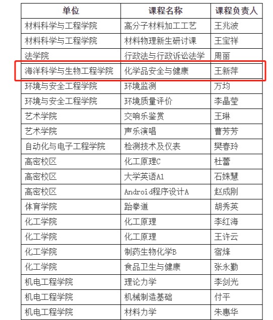 近日,公司公示了谈球吧网页版登录入口课程思政示范课程评选结果,其中,海洋公司王新萍副经理主讲的《化学品安全与健康》入选校级课程思政示范课程。