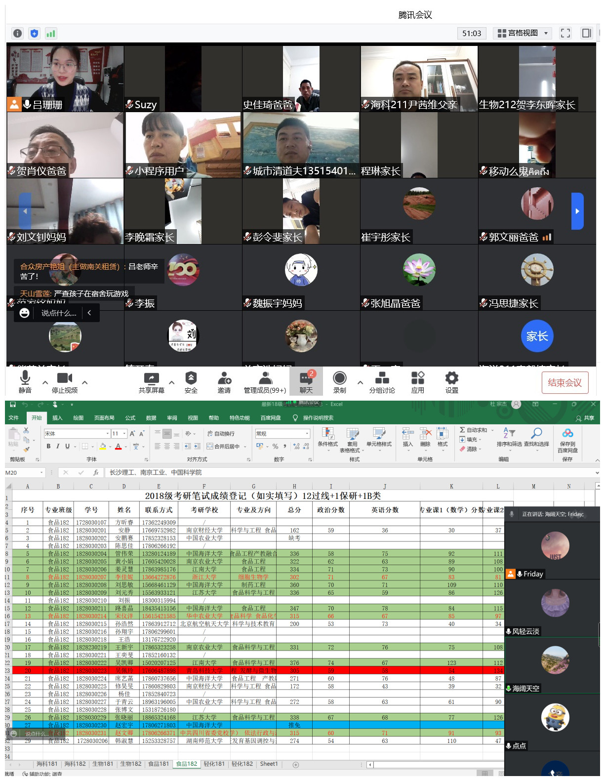 会上,部分家长还就研究生复试、考研准备、科技创新、学分认证等工作与辅导员进行咨询交流。
