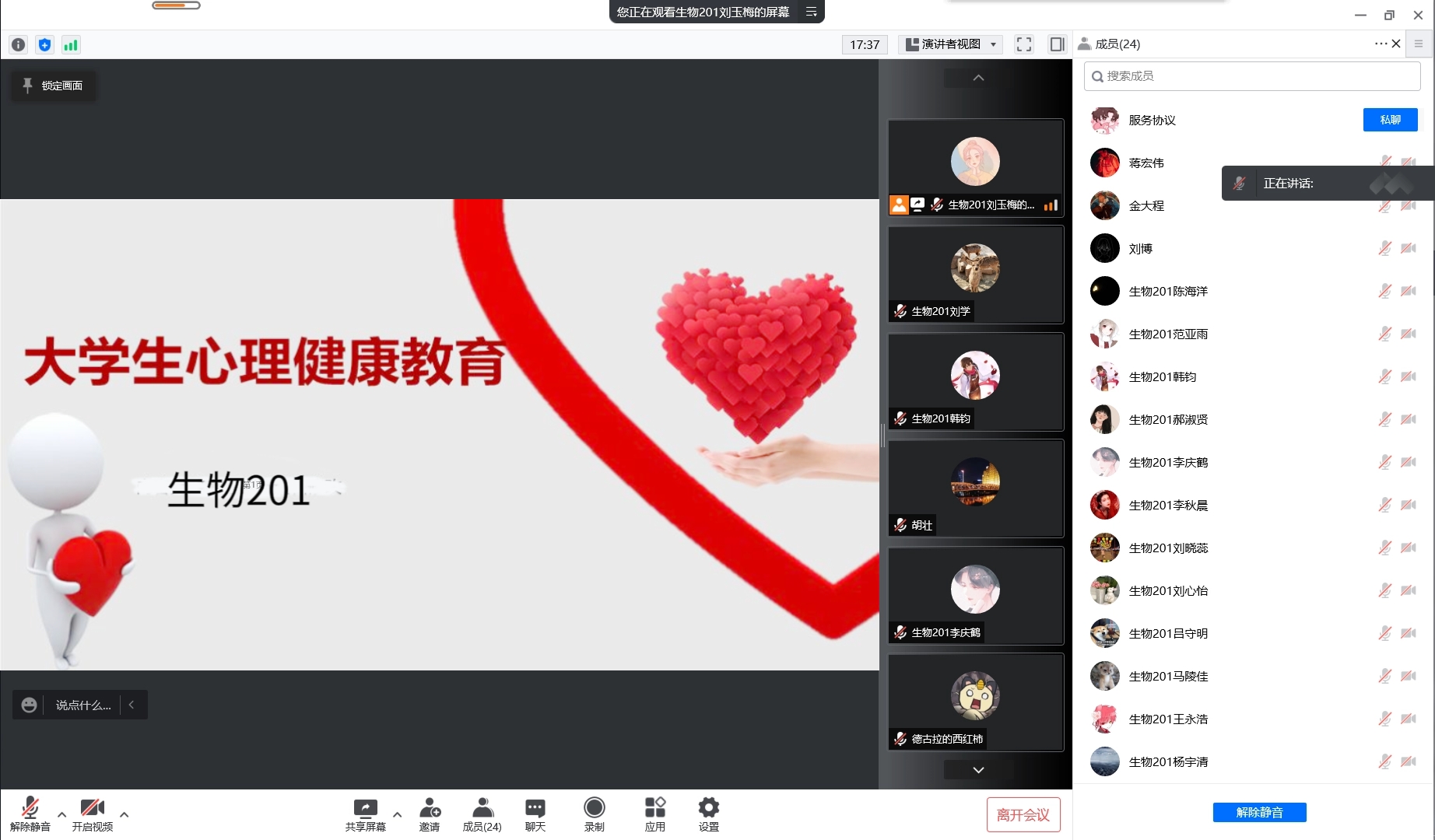 封闭在校的老员工面临着疫情和学业的双重压力,易出现不安、焦虑,甚至是恐慌等各种情绪,严重影响他们的身心健康和学习。除了增强主流媒体信息透明度、建立不同程度的心理支持、提高家庭支持及公司支持力度以外,实行封闭式管理的高校的员工如何调节自己的心理状况?针对这个问题,生物201班开展了,疫情心理交流主体班会,由班主任为大家讲解如何客服疫情期间的心理问题。