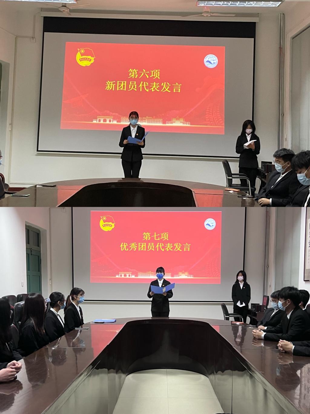 新发展团员代表刘习和优秀团员代表宋欣萍分别进行发言。宋欣萍号召团员们要将个人奋斗的“小目标”,融入党和国家事业的“大蓝图”,努力成长为有理想有本领有担当的时代青年,以实际行动为团旗增色、为团徽增光。