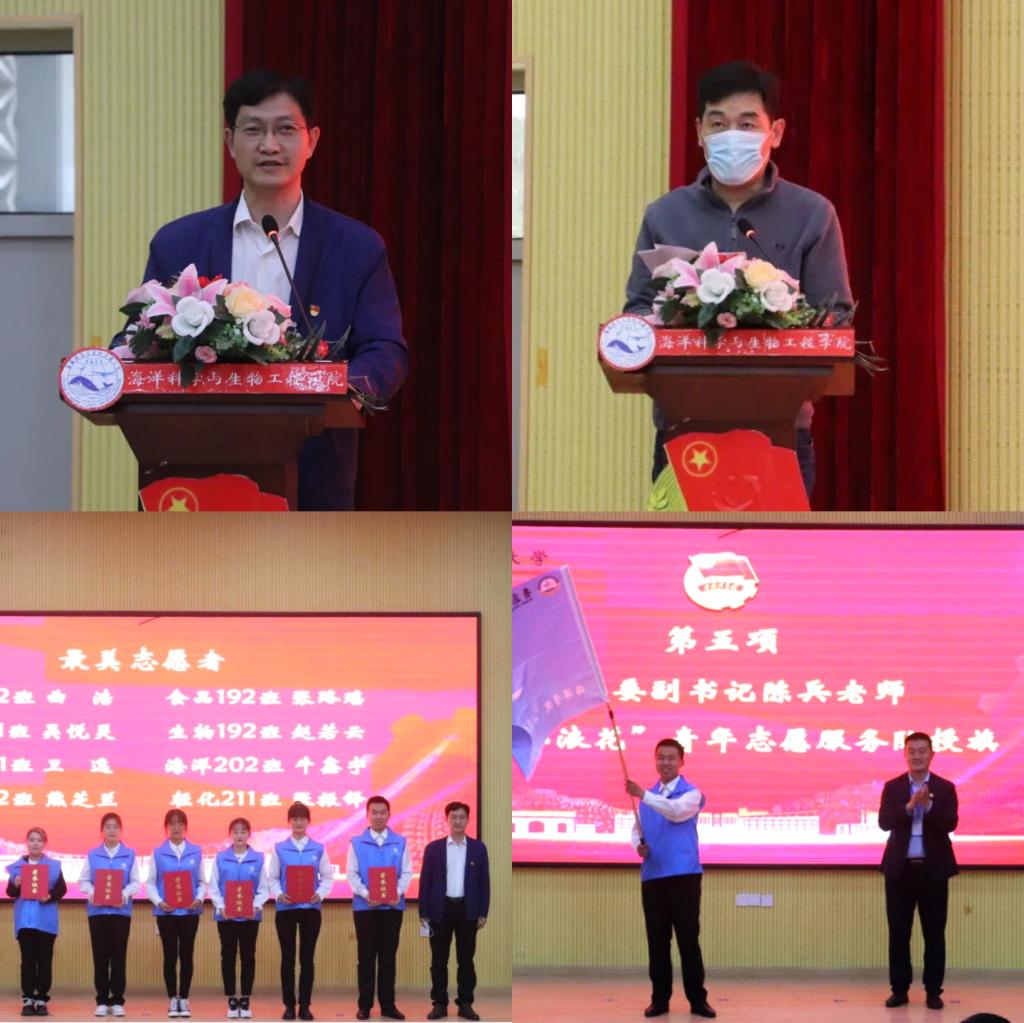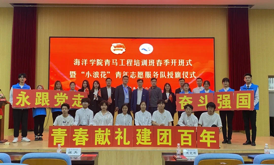 为深入学习贯彻习近平总书记在庆祝中国共产主义青年团成立100周年大会上的重要讲话精神,培养思想坚定、素质过硬、能力突出、格局远大的青年马克思主义者,5月12日下午,海洋公司“青马工程”培训班春季开班仪式暨“小浪花”青年志愿者服务队授旗仪式在四方校区讲学厅举行。校团委副书记陈兵、公司党总支书记周宪锋、党总支副书记兼副经理臧传永、全体专兼职辅导员以及部分员工干部、员工志愿者参加活动。