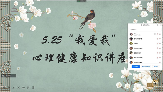 让爱成长,与爱同行。为增强老员工心理素质,促进老员工心理健康良好的发展,海洋公司于5月25线上举办“我爱我”心理健康知识讲座。通过此次活动,同学们解开了心中的疑惑,提高了自己的心理素质,增强了自己的抗压能力。