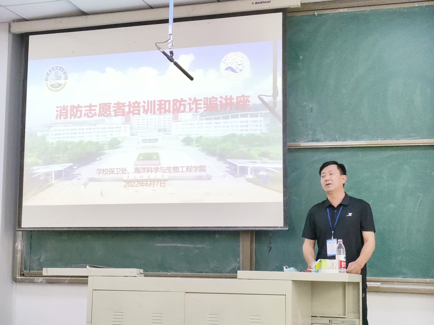 为认真贯彻落实《消防法》和提升消防志愿者的安全知识储备,同时进一步提升毕业生及其他年级同学防诈骗的意识和能力,保护员工人身和财产安全,6月7日下午在二教111,海洋公司团委和公司保卫处联合,按照疫情防控的有关要求组织举办了消防志愿者培训和防范电信诈骗主题讲座,公司保卫处治安科单宝军老师和消防科仇立峰老师、赵伟老师应邀到场讲座,参与讲座的还有公司党总支副书记兼副经理臧传永老师以及各年级宿舍长、主要员工干部,会议由杜宗杰老师主持。