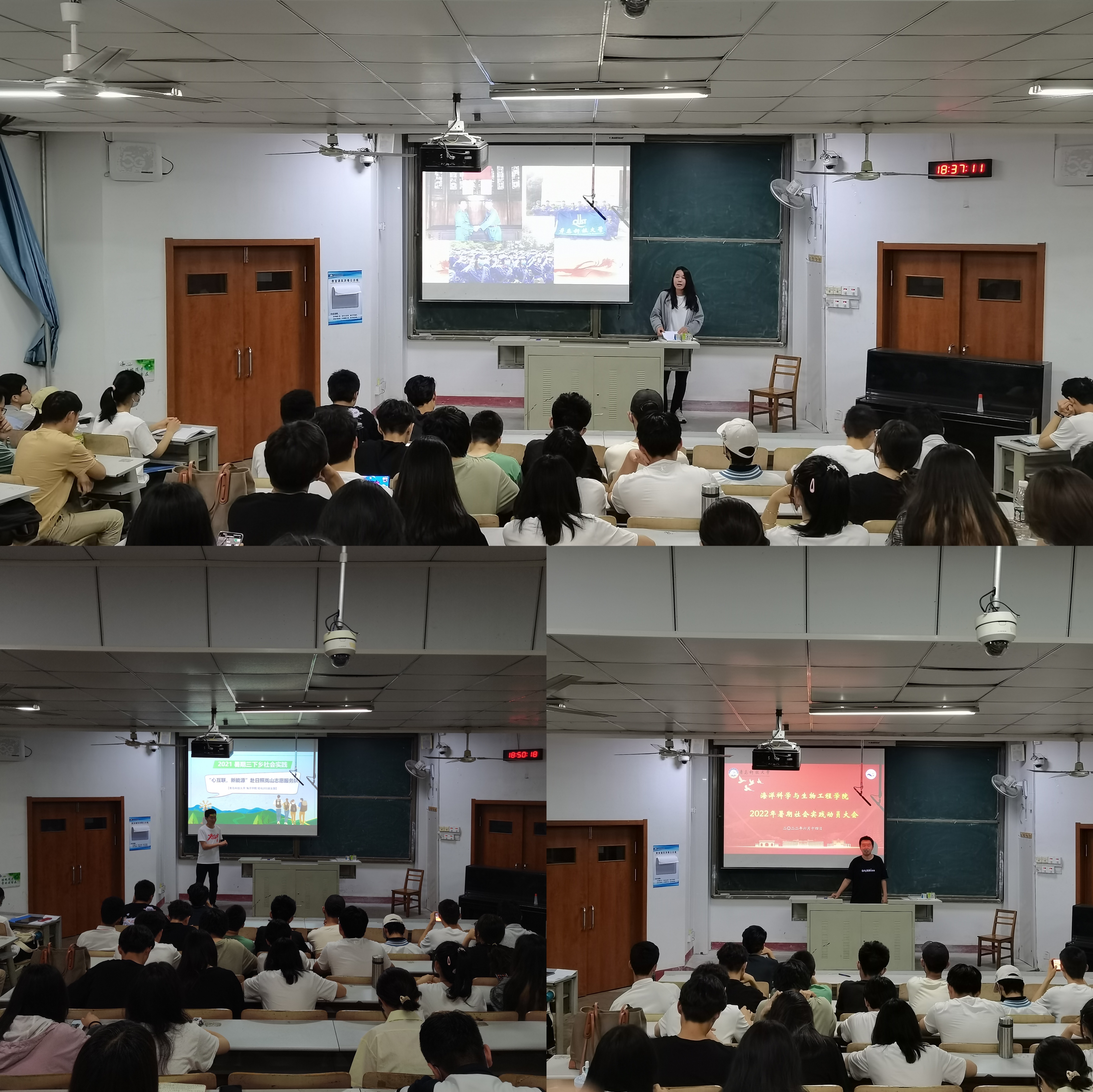 通过本次社会实践动员大会,同学们对暑期社会实践有了更加清晰的认识,也对暑期社会实践的项目开展有了更明确的方向,为顺利开展暑假社会实践活动打下了良好基础,帮助海洋学子在社会实践中真正达到受教育、长才干、服务社会的目的。