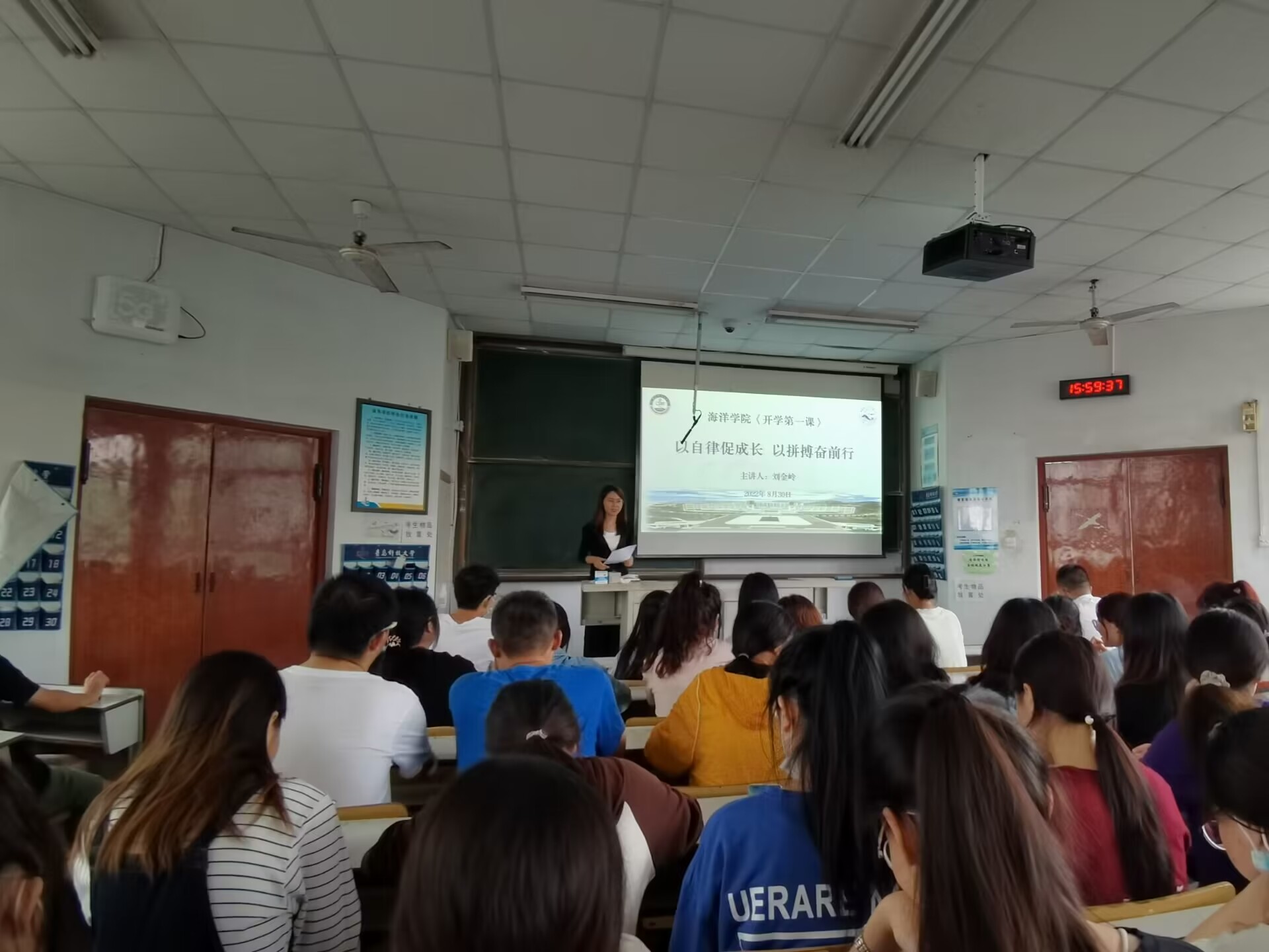 新学期伊始,为了营造良好开端,激发员工的学习热情。8月30日下午,海洋公司2020级于一教303举行了“开学第一课”。本次大会由海洋公司辅导员刘金岭担任主讲人,2020级全体本科员工参加。