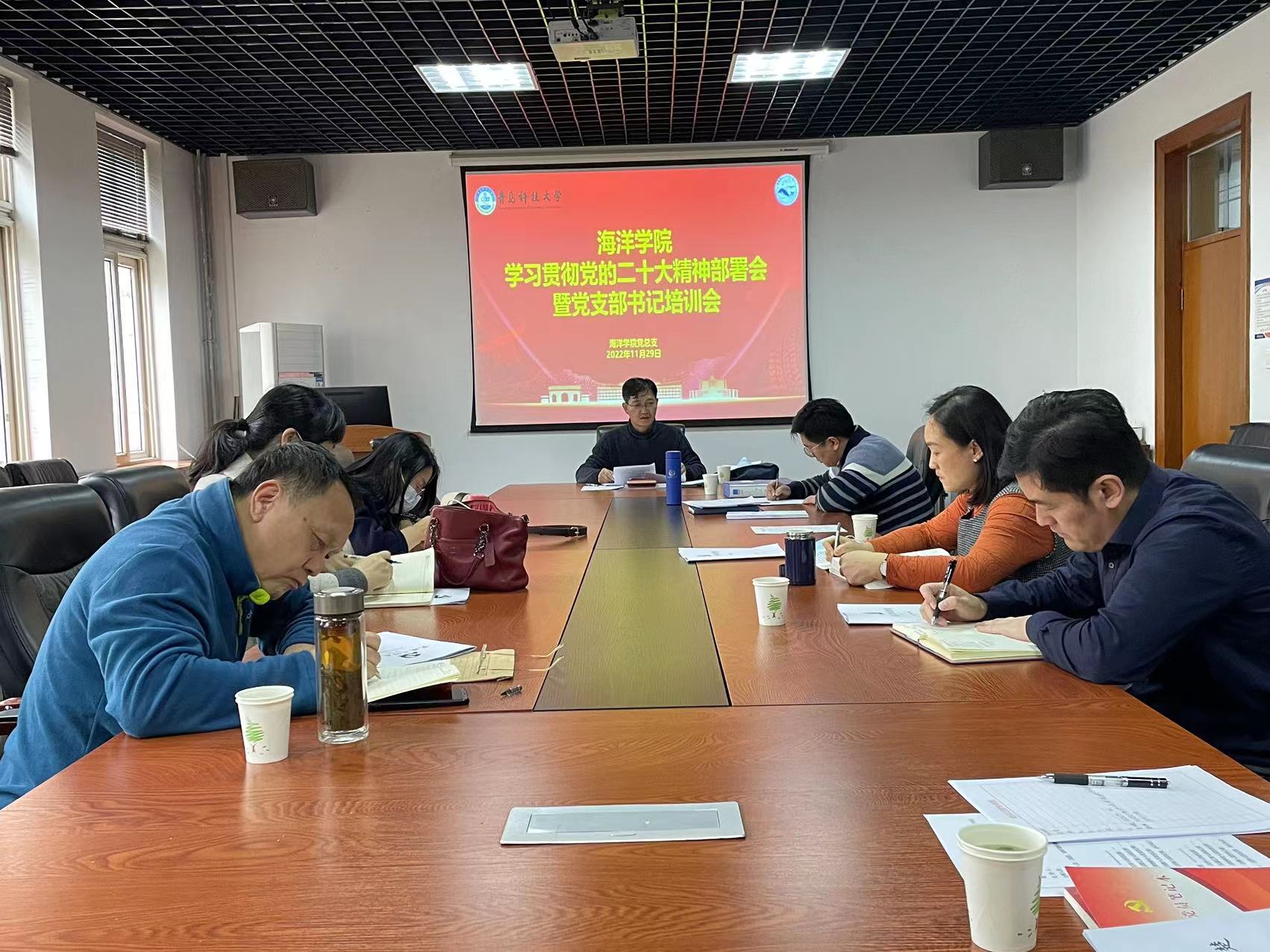 为深入学习贯彻党的二十大精神,全面落实上级关于学习宣传贯彻党的二十大精神决策部署。11月29日下午,海洋公司召开学习贯彻党的二十大精神部署会暨党支部书记培训会。公司党总支委员和全体支部书记参与会议,会议由党总支书记周宪锋主持。