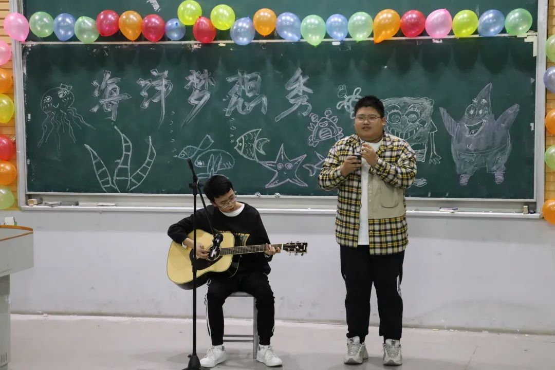 轻化212周业杰,孙海天表演《送别》,两人一弹一唱 ,配合十分默契。