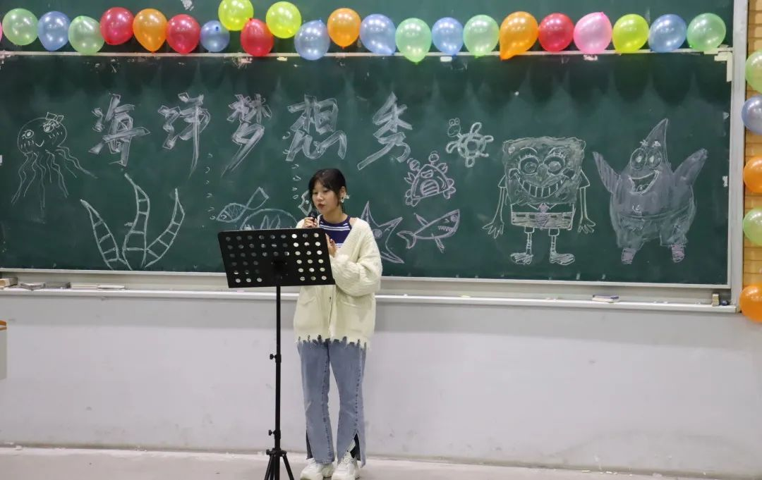 随后,同学们依次上台进行表演展示。来自轻化211罗雅,许帆,代阳悦,苏丹丹表演歌曲《微微》。熟悉的歌曲,细腻的歌声,让现场的每一个人心中都充满力量。
