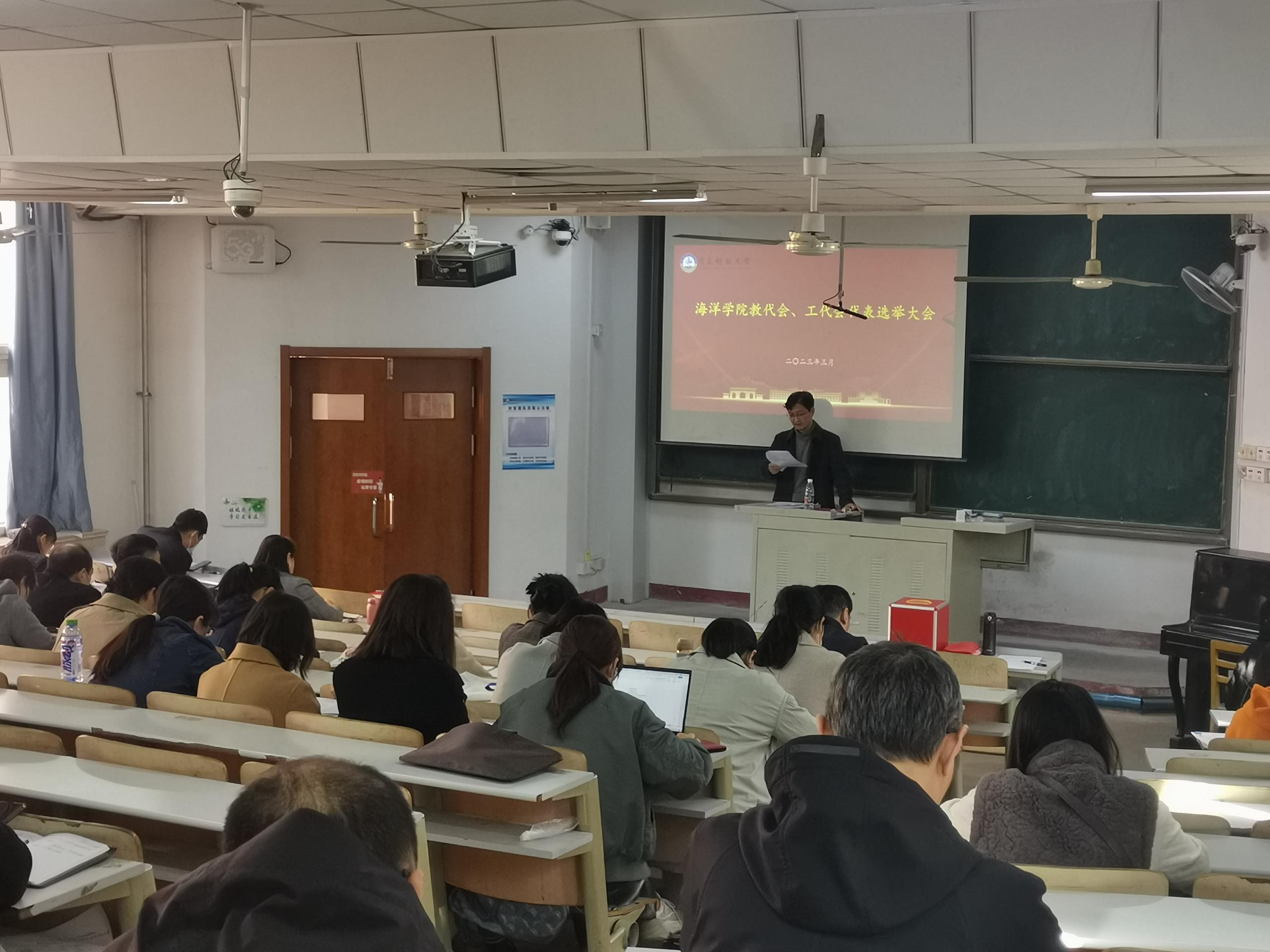 根据《谈球吧网页版登录入口第八届教职工代表大会筹备工作方案》和《谈球吧网页版登录入口第十二届工会会员代表大会筹备工作方案》的要求,海洋公司于2023年3月28日下午在四方校区二教111进行了海洋公司出席公司教代会、工代会代表选举大会,公司全体教职工参会。