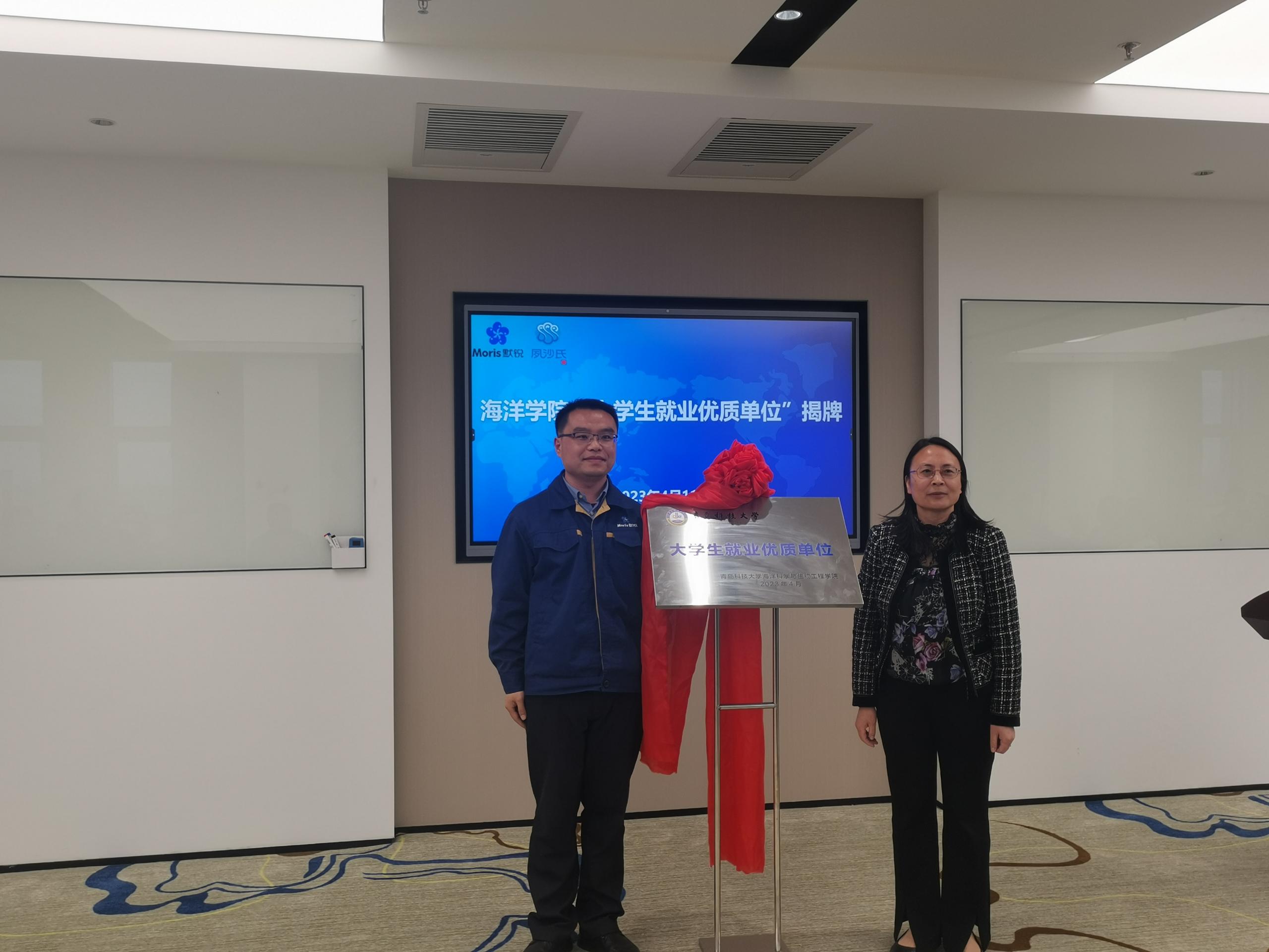 集团教务处处长兼海洋公司经理马翠萍与集团董事长杨树仁等进行深入交流,了解企业文化、产品特色、管理模式,参观各厂区运行情况。双方就技术攻关、共同开发课程、产教融合实训、校企导师联合授课等方面作了沟通研讨。马翠萍与集团轮值赋能总裁、高质量研究所所长邢海平为“老员工就业优质单位”揭牌。