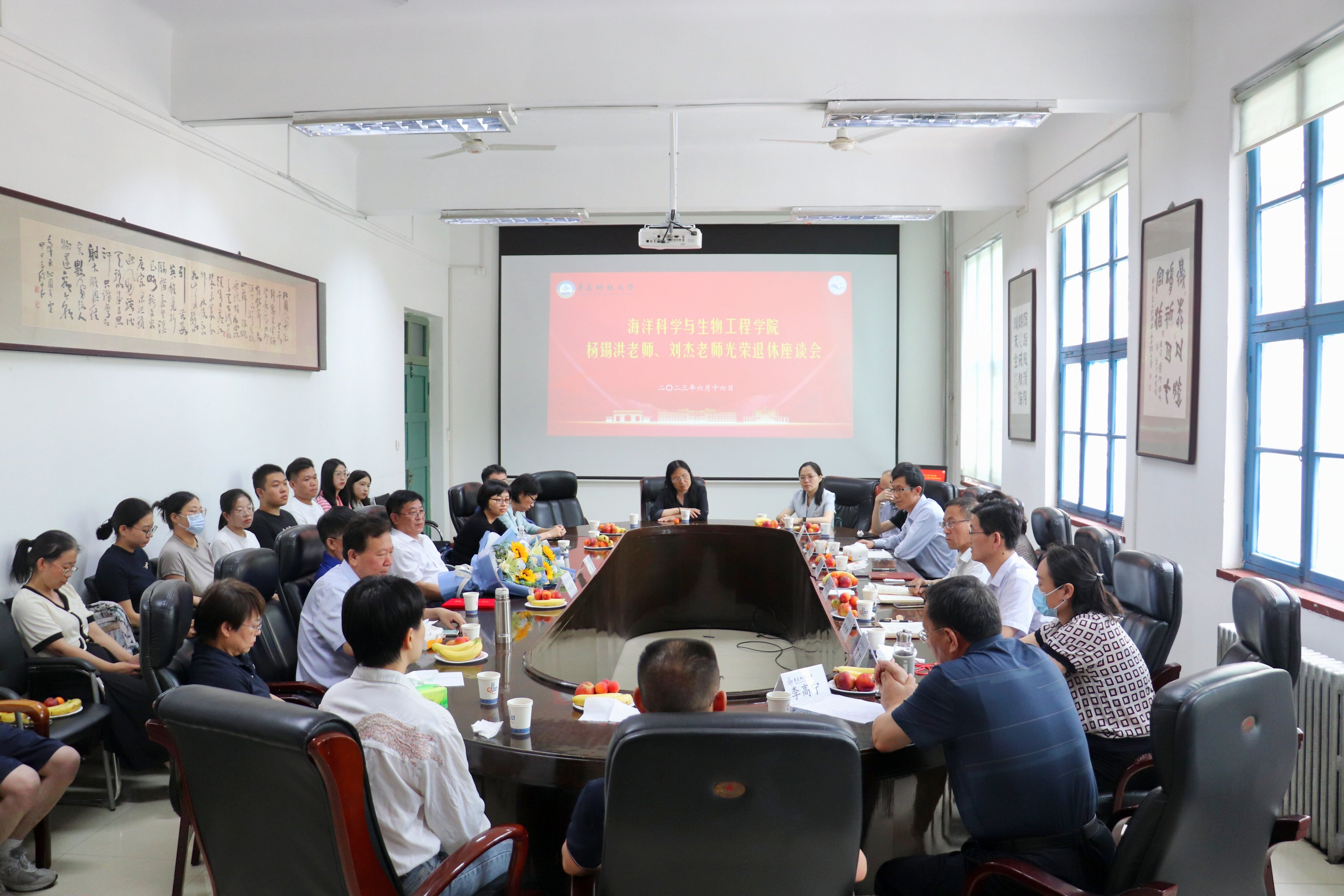 为了充分体现对退休教师的关心关爱,不断增强退休教师的使命感、归属感,海洋公司于6月16日在一号行政楼海洋公司会议室为杨锡洪老师和刘杰老师举行光荣退休座谈会。公司党委常委、统战部部长秦姣,人事处副处长傅云磊,离退休处副处长郑少军,海洋公司领导班子、教师代表和员工代表参加此次会议。会议由海洋公司工会主席李高宁主持。