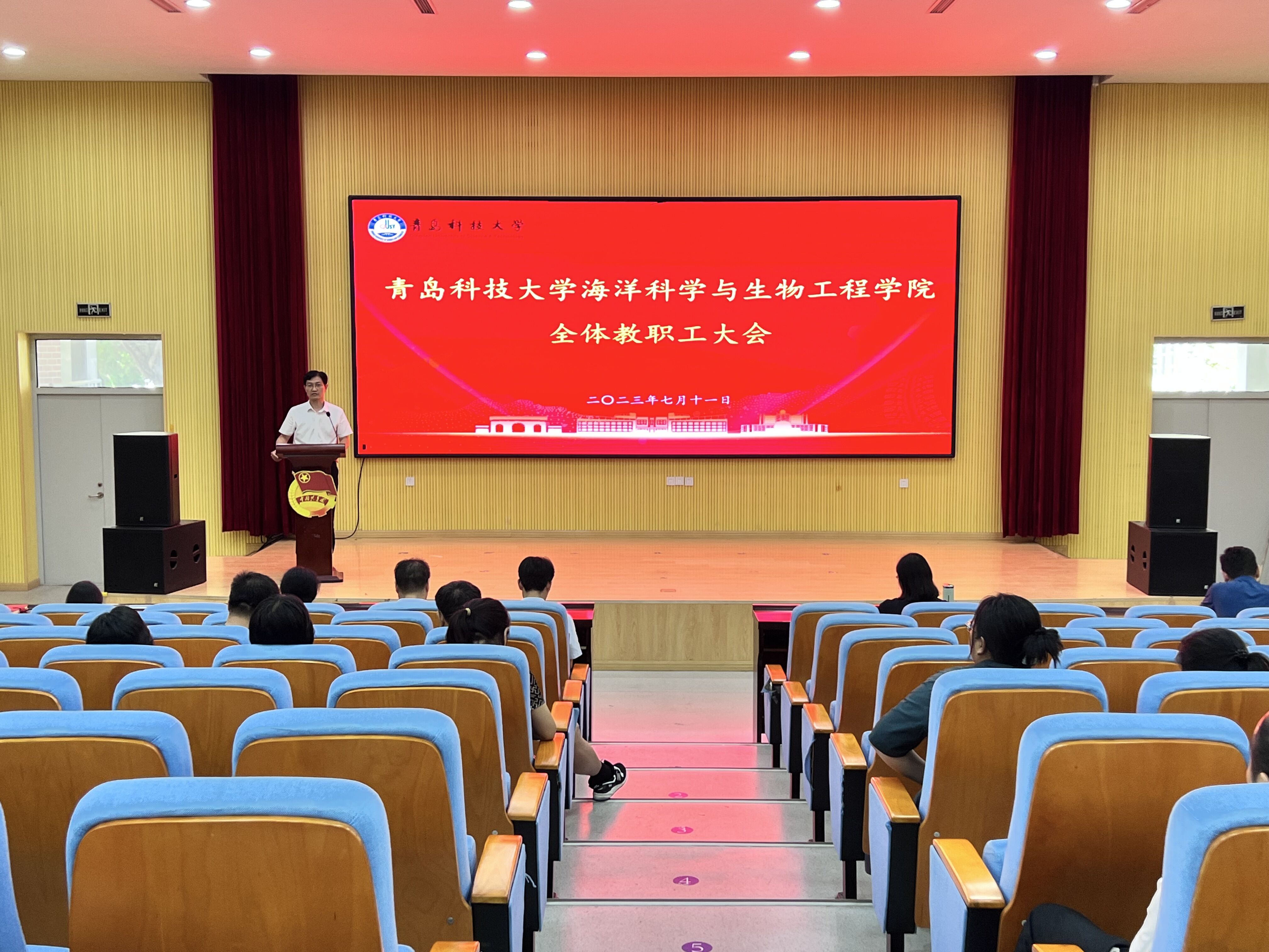 7月11日下午,海洋公司在四方校区尚舜报告厅召开全体教职工大会。党委常委、副董事长李志波,党委副处级组织员齐青出席会议。会议由海洋公司党总支书记周宪锋主持。