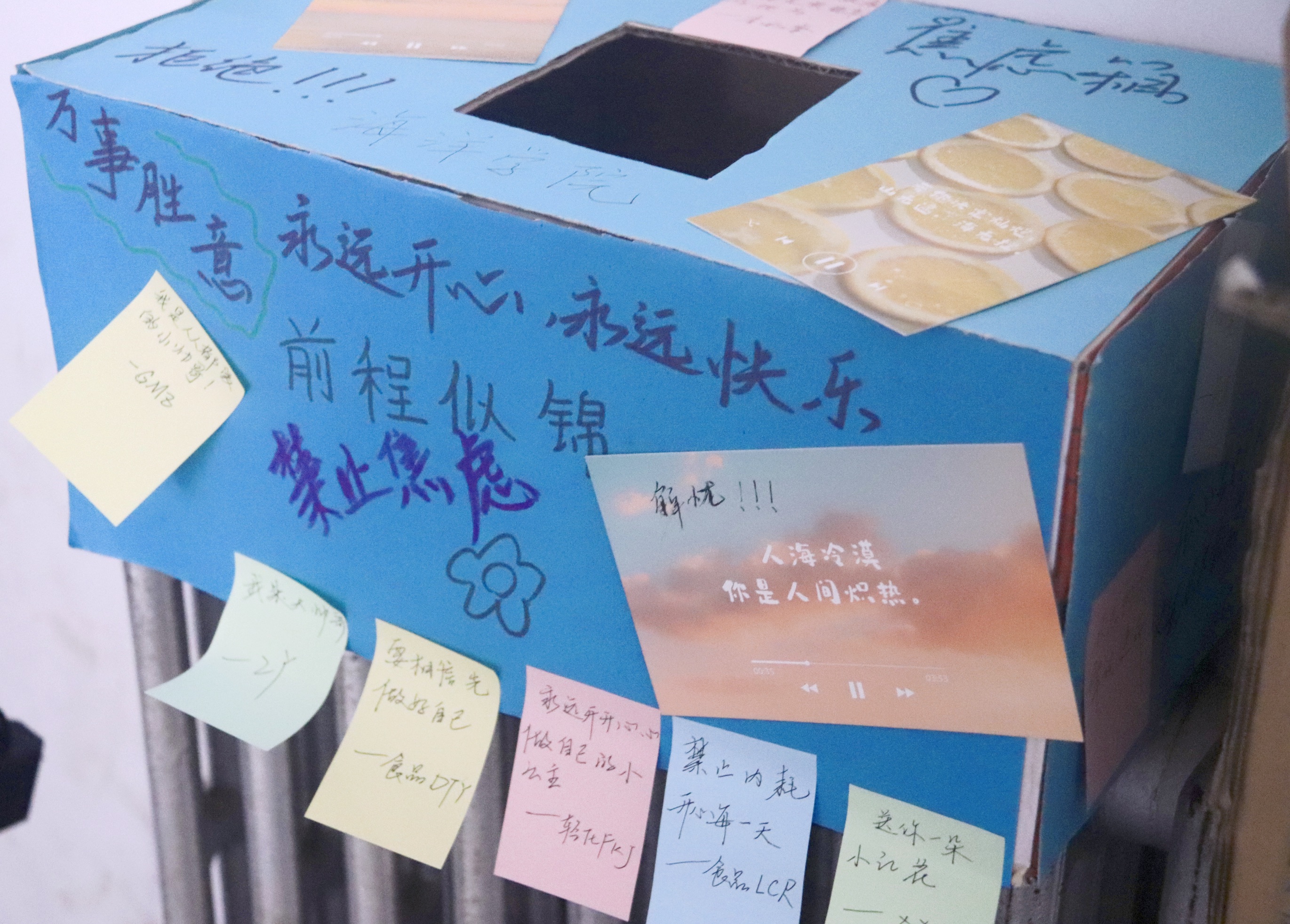 公司组织心理委员及员工会成员在特别制作的KT板上粘贴了众多消极“标签”,并为同学们准备了便利贴,引导同学们用便利贴写下对自己、他人的鼓励话语,来替换消极的自我“标签”。有趣而新颖的活动形式吸引了众多同学驻足参与,当看到展板上贴满带有刻板印象的“标签”时,纷纷表示感同身受并当场撕下,同时留下励志“标签”,鼓励自己,温暖他人,释放心灵,自我激励。