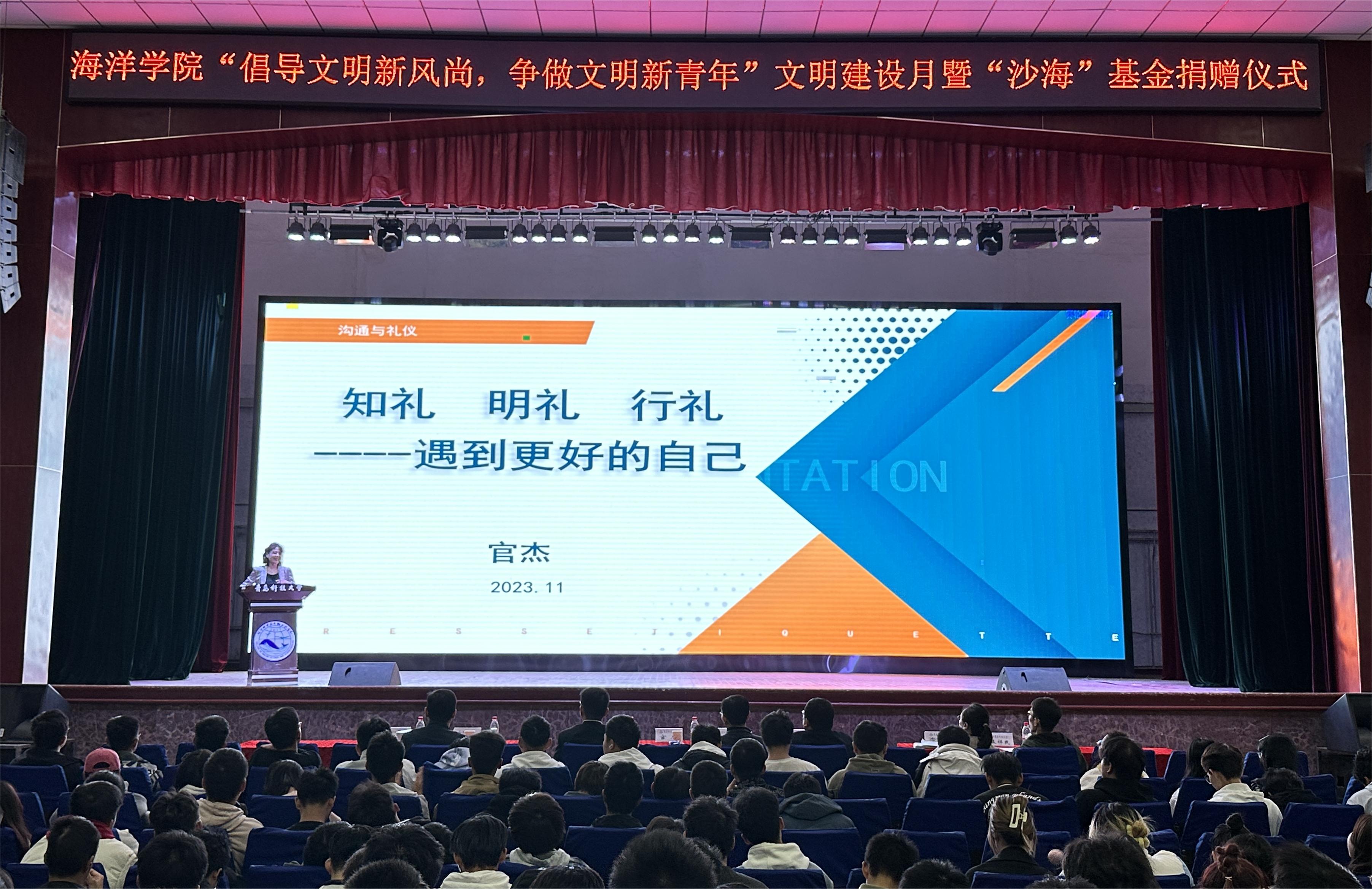 官杰以“知礼、明礼、行礼——遇见更好的自己”为主题进行了文明礼仪宣讲。