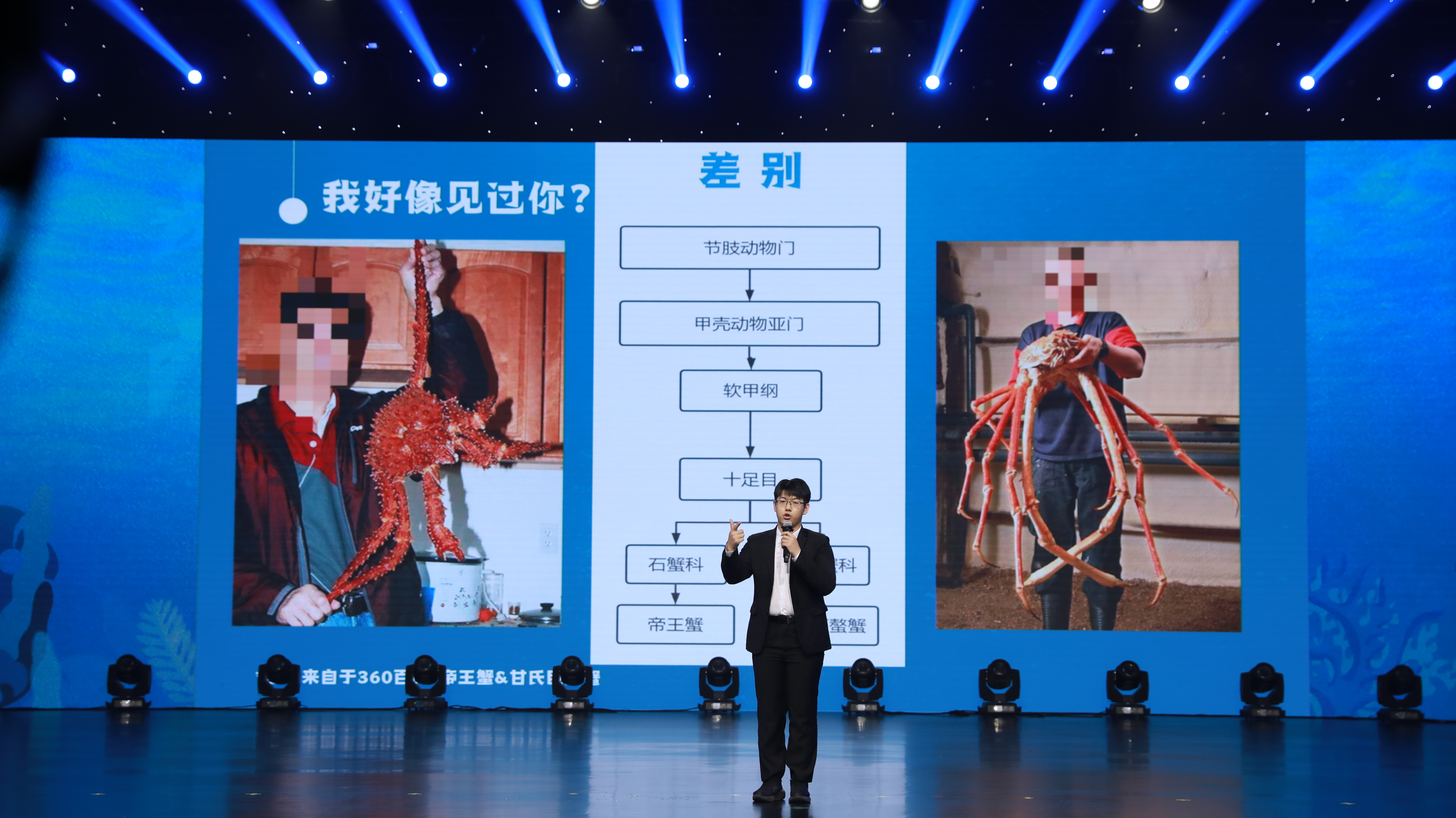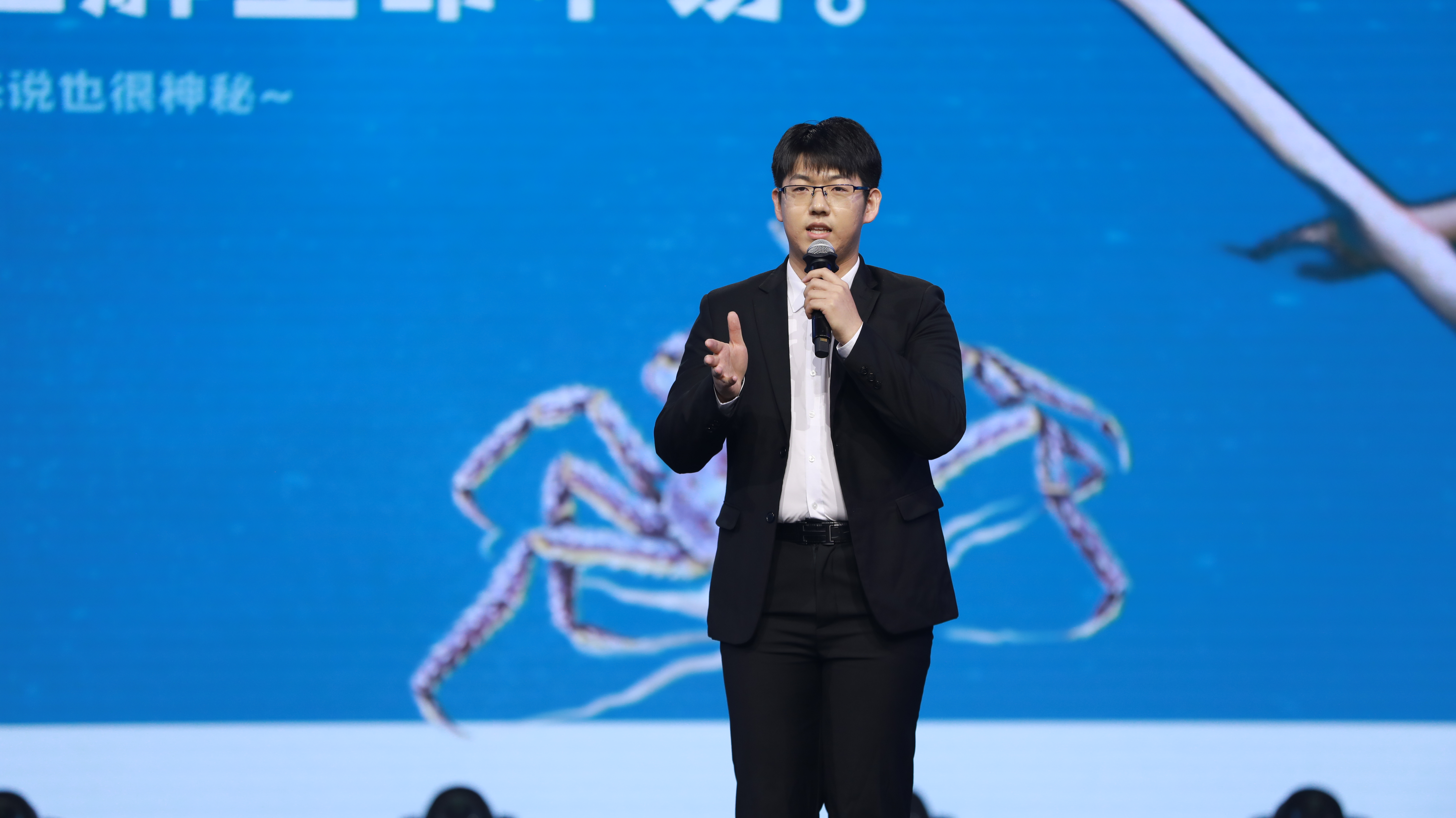 决赛中,施明宇以《深海甲士-见识海底甲士,理解生命不易》为主题进行科普,将罕见的现存最大甲壳动物甘氏巨螯蟹通过平实通俗的语言娓娓讲述,获得现场评委的一致好评。