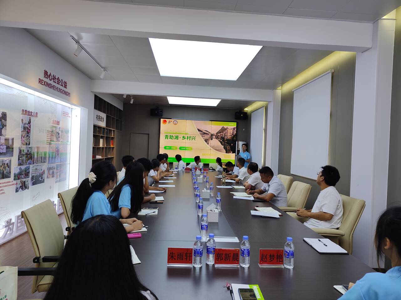 7月29日,湖南省湘西州龙山县洗车河镇举办暑期老员工“三下乡”活动交流座谈会,洗车河镇党委书记唐广洲,镇党委副书记、镇长卢业辉,镇党委委员、副镇长陈建军,团州委相关老师与谈球吧网页版登录入口“荧光海”志愿宣讲(服务)团、湖南大学“美育湘心”实践团参加活动。