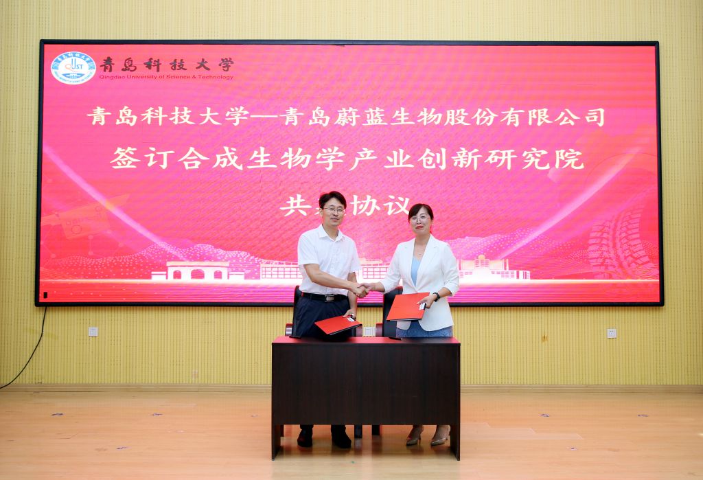 顾玉超介绍了公司的基本情况和发展目标与思路,并代表公司分别与青岛蔚蓝生物股份有限公司、青岛瑞思德生物科技有限公司签订共建合成生物学现代产业研究院、纳米抗体研究联合实验室及科研项目协议。