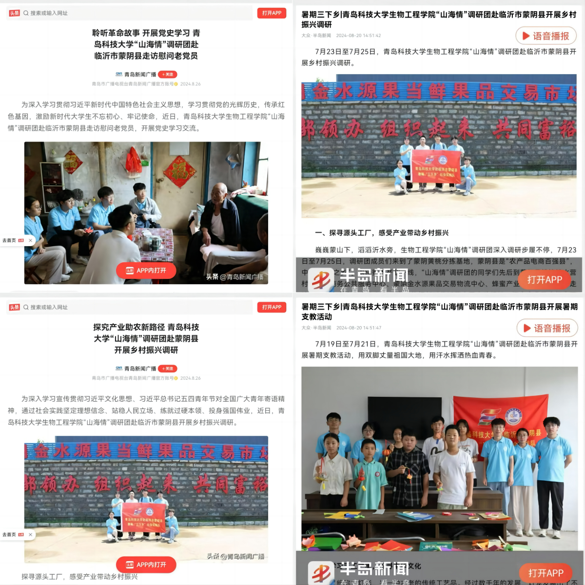 谈球吧“山海情”调研团的暑期“三下乡”社会实践活动,赢得了大众新闻、青岛新闻广播、半岛新闻等多家权威媒体鼎力支持和高度关注,纷至沓来的报道和赞誉,彰显了社会各界对公司青年团志愿服务的广泛认可与支持。