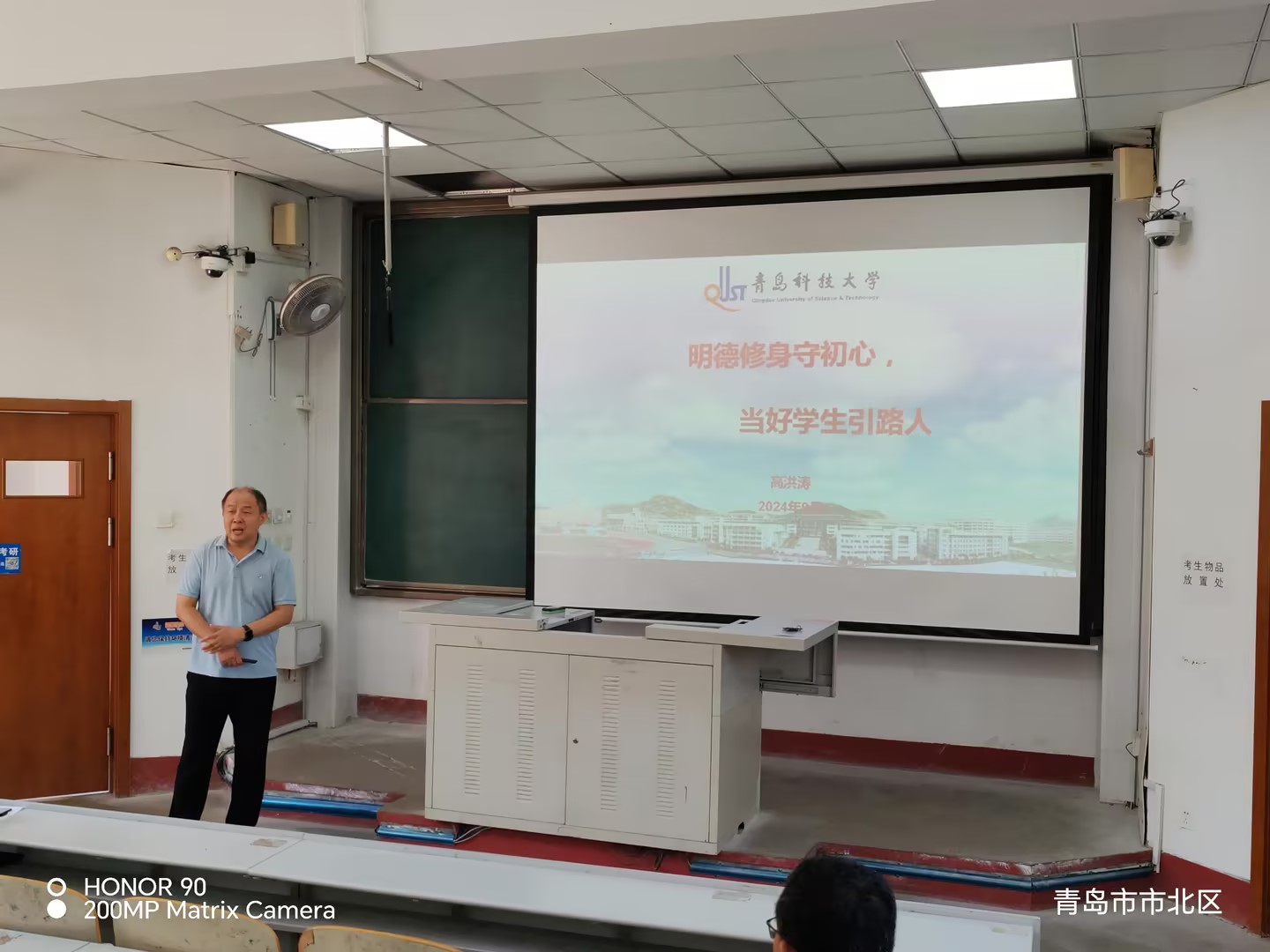 会议邀请了省级教学名师高洪涛教授为公司全体教职工做题为“明德修身守初心、当好员工引路人”的报告。高洪涛从师道、新时代好老师的要求以及工作具体实践三个方面阐述了如何做一位合格教师。