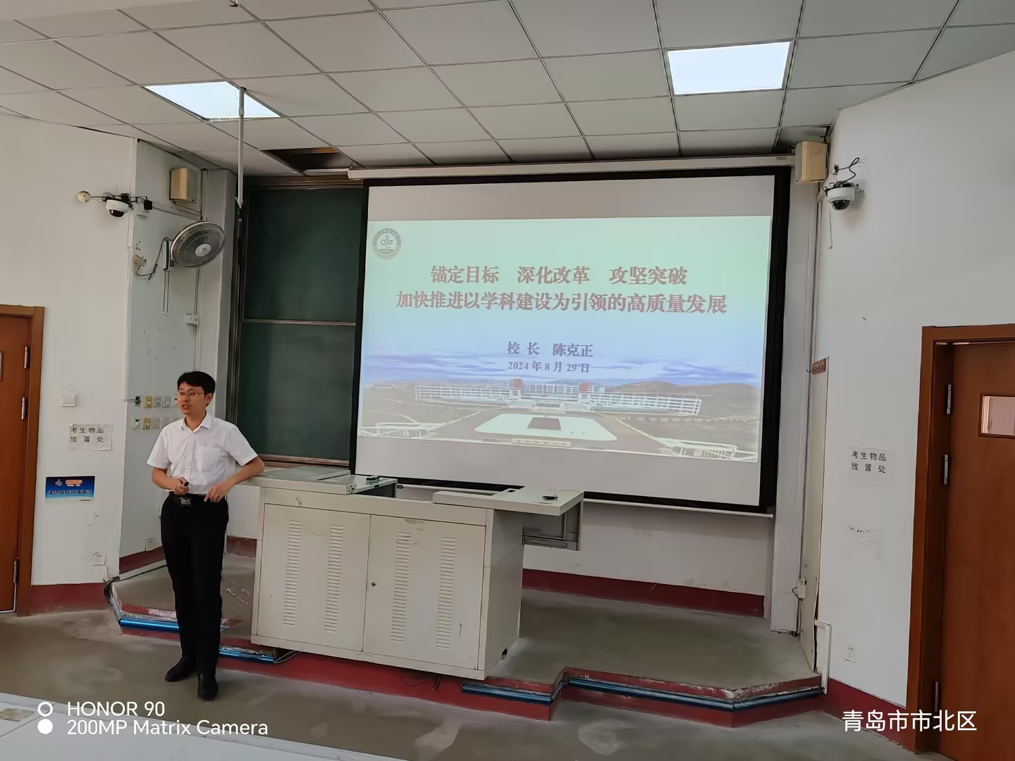 顾玉超传达了陈克正董事长在学习贯彻党的二十届三中全会精神暨2024年暑期中层干部培训班的报告精神,重点解读了公司2024年发展趋势及考核导向、2024年半年回顾与重点工作。他指出,未来公司要锚定团队建设,提升专业发展的核心竞争力,坚持以团队建设为引领,加快完成学科专业调整优化布局,提升一流团队建设和“811”项目建设的大局贡献度。