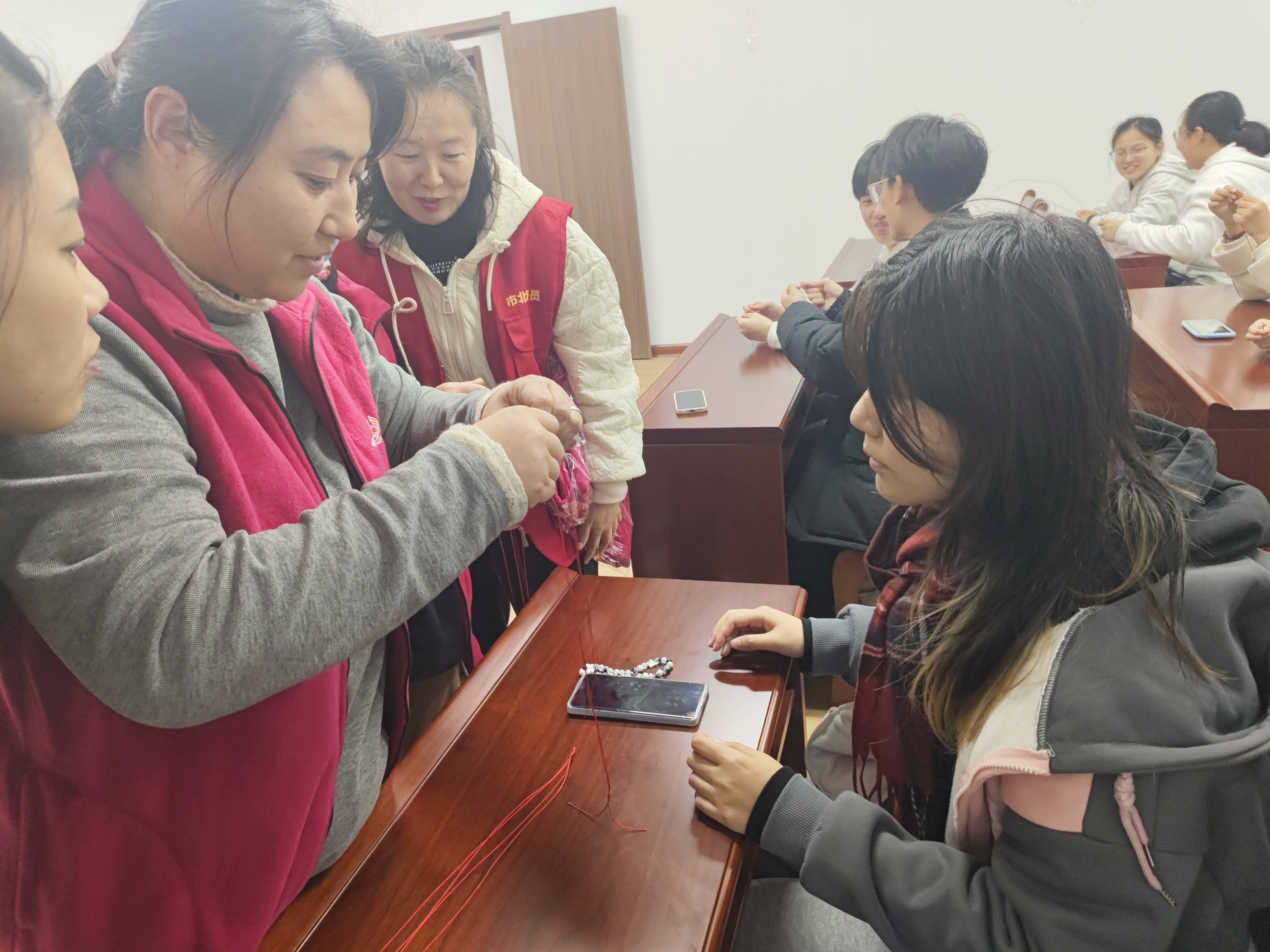 活动现场,青年员工在老师的鼓励和同学们相互帮助下,把看似复杂的一次次绕绳,交织成一根根有特色的手链。每一根手链既有传统元素的再现,也有个性化的创新融入。