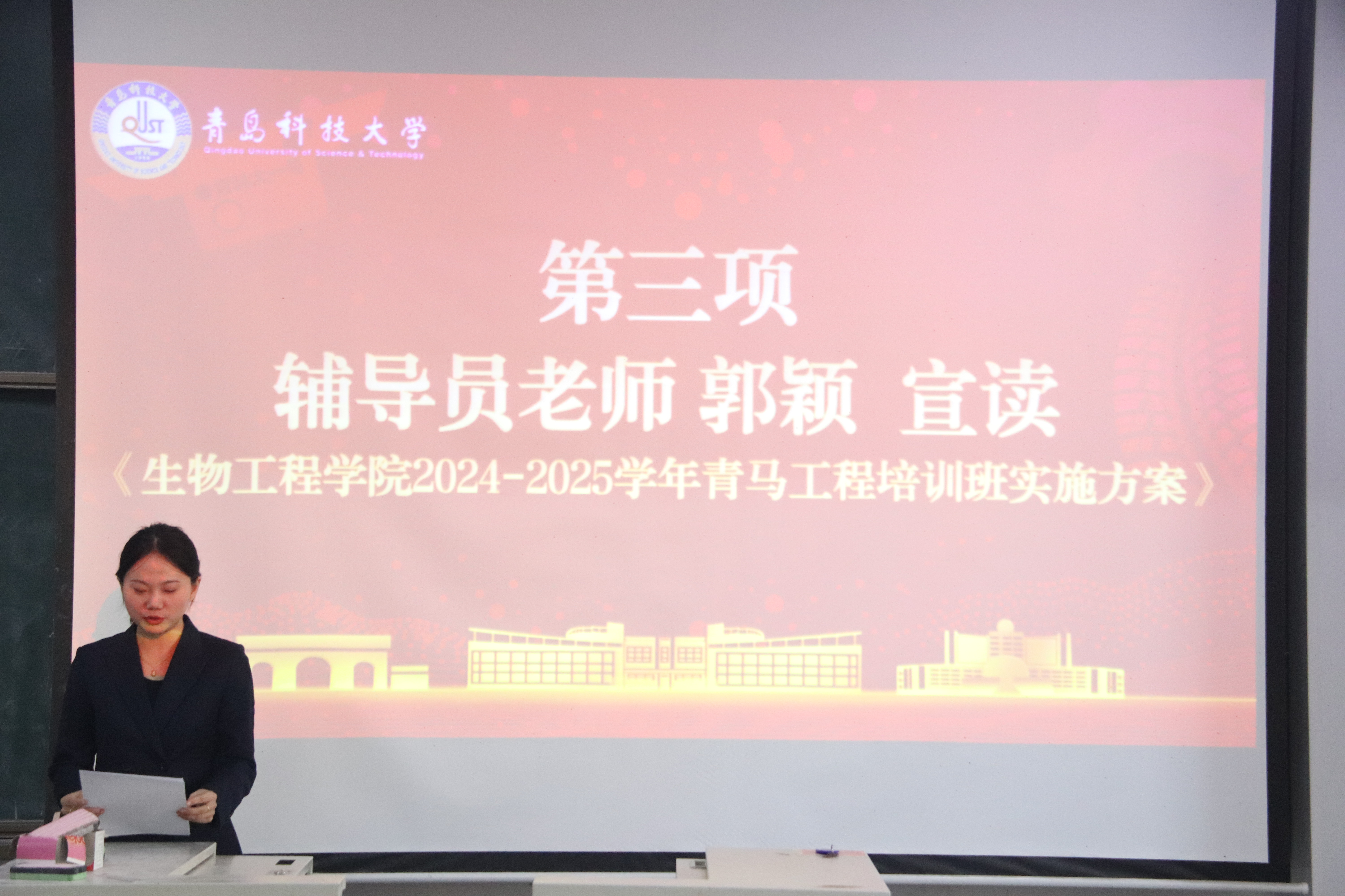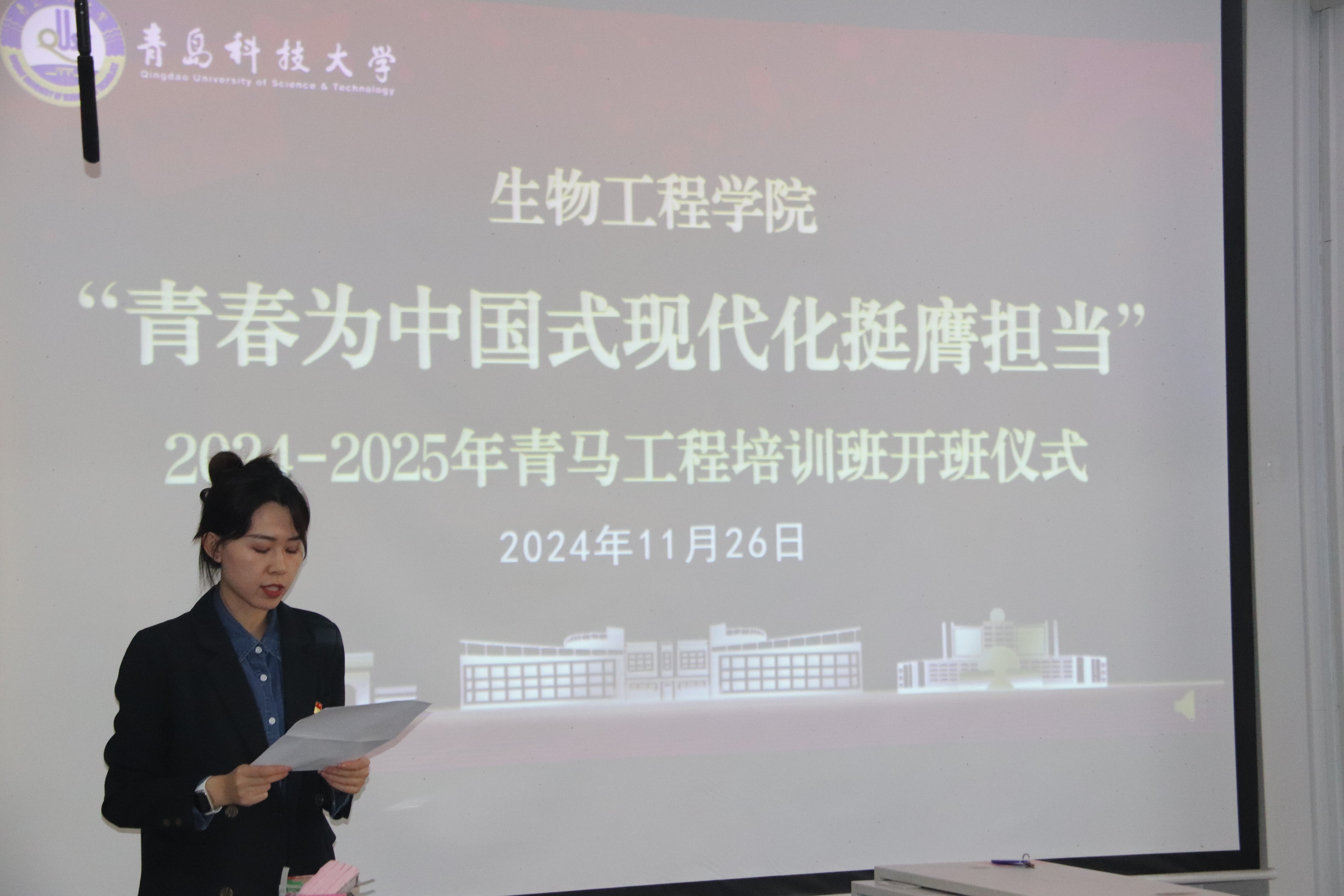 为深入学习贯彻习近平新时代中国特色社会主义思想,贯彻落实习近平总书记关于青年工作的重要思想,扎实开展“青马工程”培训工作,激励广大青年成为有理想、敢担当、能吃苦、肯奋斗的新时代青年,11月26日,谈球吧于四方校区二教317举办2024—2025年青马工程培训班暨入团积极分子培训班开班仪式。生物工程公司党委副书记兼副经理刘浩、团委书记兼学工办主任秦洪庆、团委副书记兼学工办副主任刘金岭、辅导员车玉章、郭颖以及培训班全体学员参加。