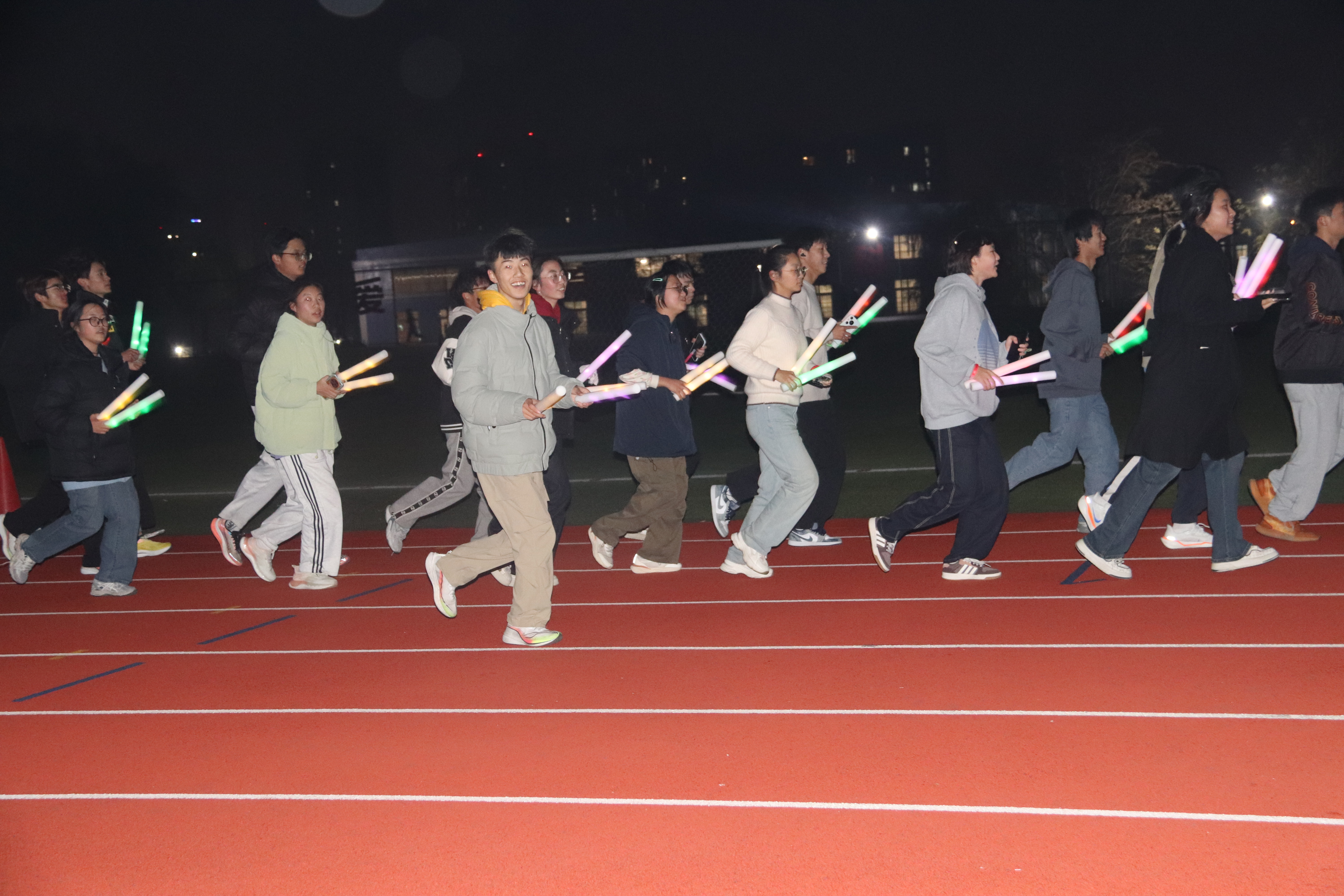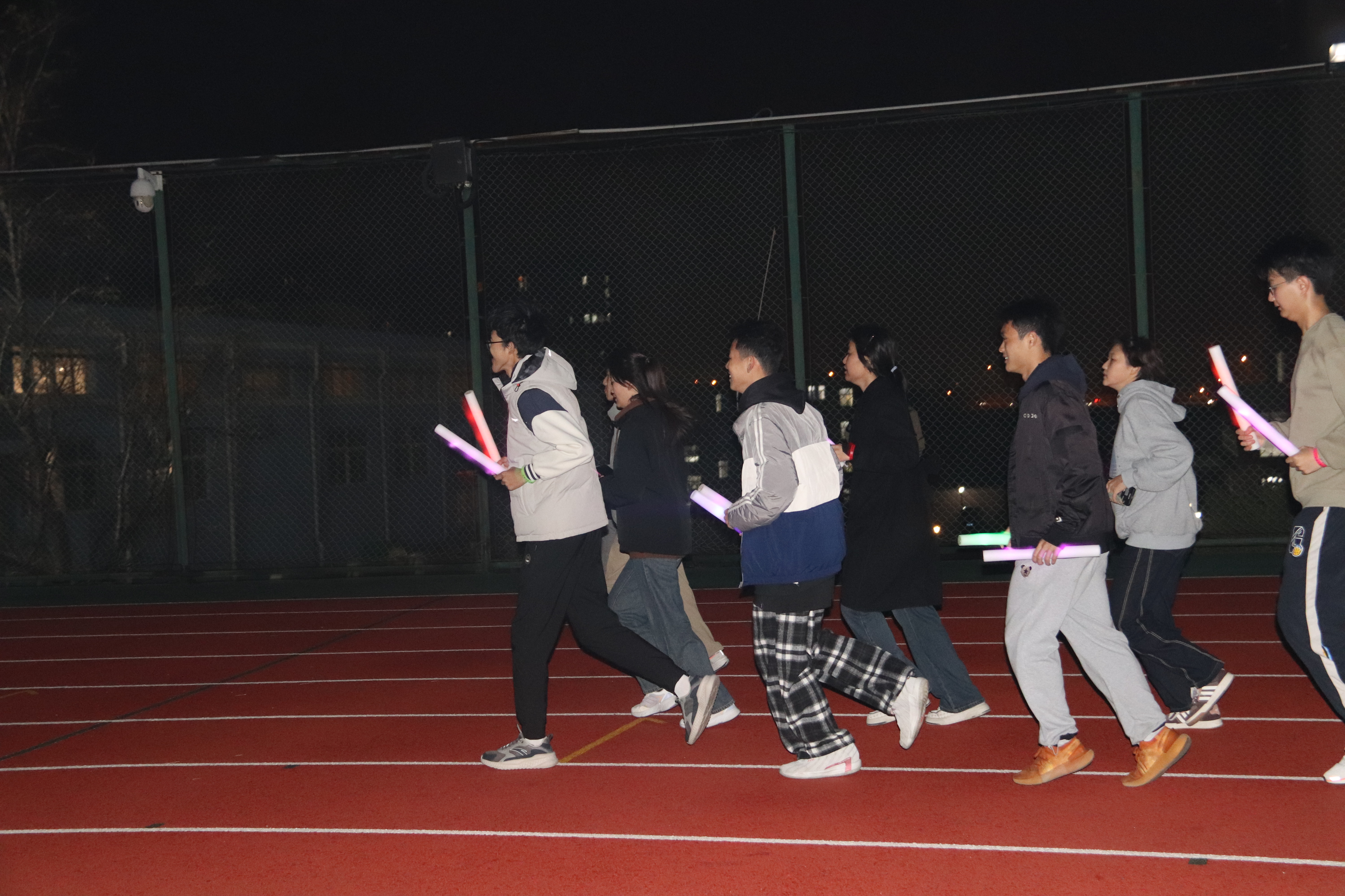 随着发令,荧光夜跑活动正式开始。参赛者们如离弦之箭般冲出起点,沿着预设的路线奔跑。在奔跑的过程中,他们不时挥舞着手中的荧光棒,与身边的伙伴互动,享受着运动带来的快乐和自由。校园内的路灯和建筑物在荧光棒的映衬下,显得更加神秘而迷人。在奔跑中, 同学们不仅锻炼了身体,还增进了彼此之间的友谊和团队合作精神。大家纷纷表示,这样的活动不仅让他们感受到了运动的魅力,还激发了他们积极向上的生活态度。