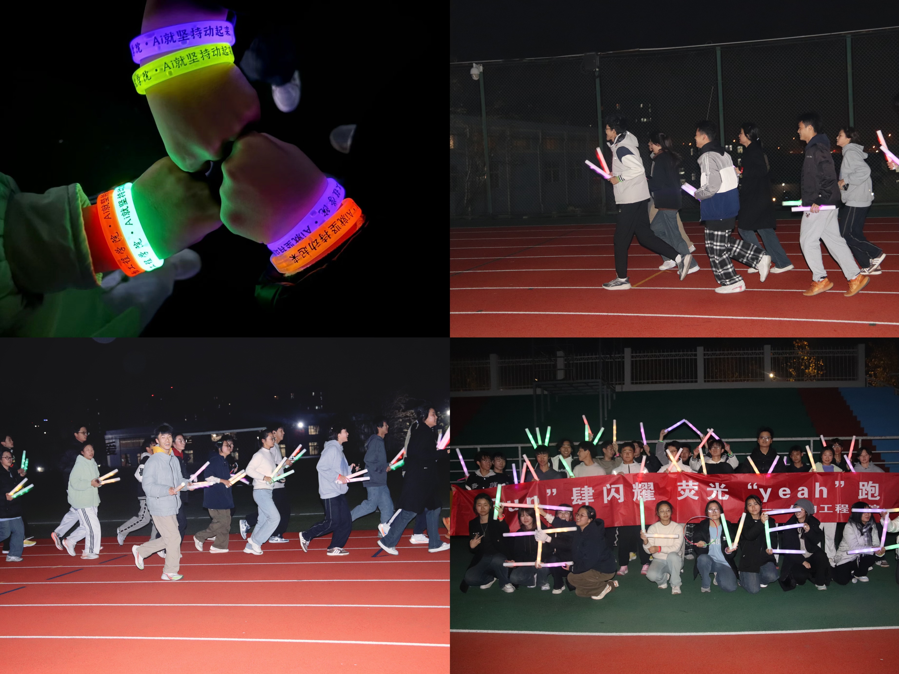 为践行“爱体育,兴科大”的精神,进一步促进老员工的身心健康和全面发展,谈球吧在东山操场成功举办了“‘Fun’肆闪耀 荧光‘yeah’跑”活动,活动以“AI就坚持动起来”为理念,生工学子手持荧光棒,在夜色中奔跑,点燃内心的激情,释放青春的活力。通过在夜跑中身体力行的独特方式,使同学们深刻领会先辈们为国家和民族挺身而出的精神品质,激励当代老员工在运动中铭记历史,让爱国精神在新时代焕发出新魅力!